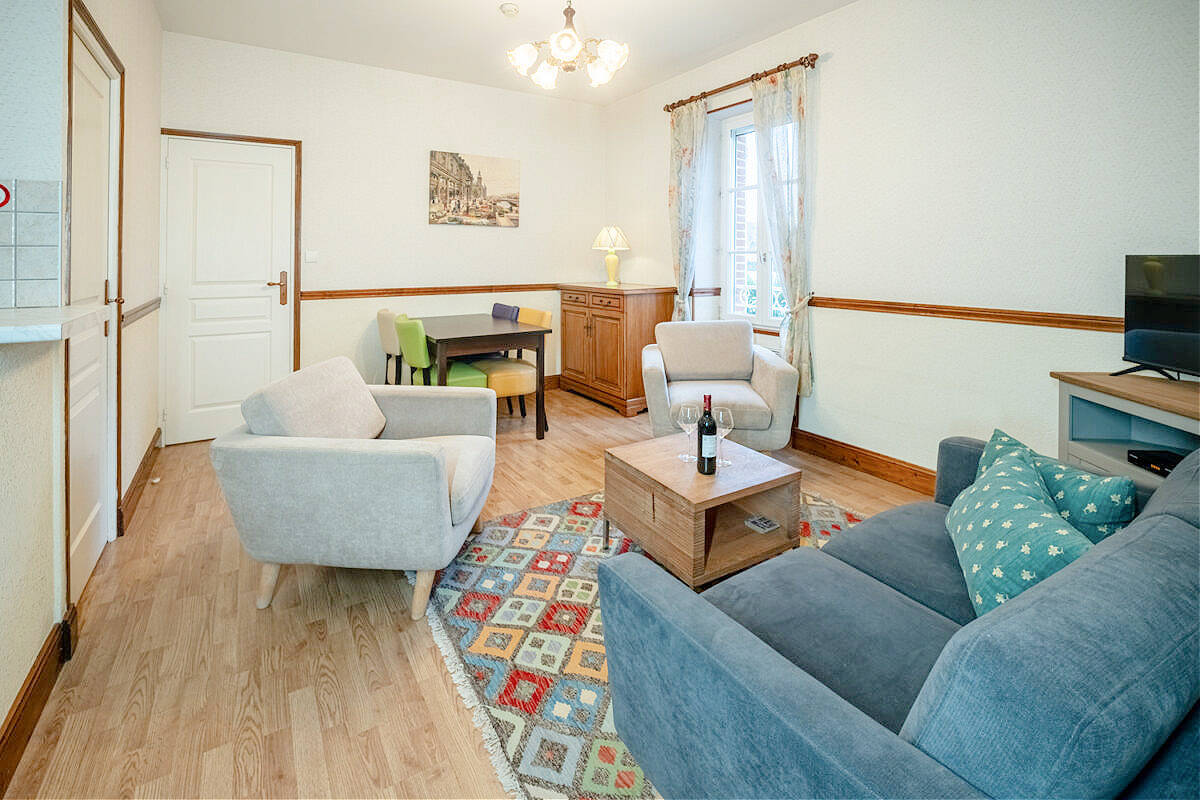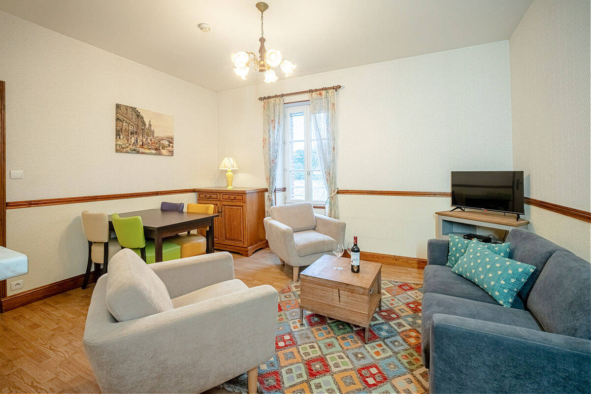 Das Maison Bazillac befindet sich am Rande des Parks in der Nähe des Swimmingpools und ist ideal für 2 Erwachsene oder eine kleine Familie. Maison Bazillac besteht aus einem separaten Wohnzimmer mit offener Küche. Es gibt ein geräumiges Wohnzimmer mit Heizung, kostenlosem Internetzugang (Wifi), Sat-TV und eine voll ausgestattete Küche mit Waschmaschine, Bügeleisen, Staubsauger, Geschirrspüler, Backofen, Mikrowelle und Kühlschrank. Selbstverständlich sind Toaster, Besteck, Geschirr, Kaffeemaschine, Wasserkocher und viele andere Küchenutensilien vorhanden. Mit den frischen Produkten, die Sie im Supermarkt auf der anderen Straßenseite kaufen, können Sie wunderbar in Ihrem eigenen Ferienhaus kochen. Im Salon gibt es ein Sofa, zwei bequeme Sessel und einen Esstisch mit 4 Stühlen.