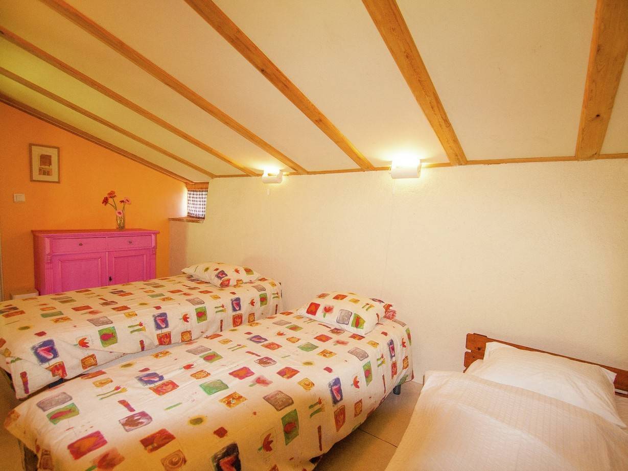 Schlafzimmer 3 (Obergeschoss): Unter dem Dachschrägen, ausgestattet mit zwei Einzelbetten (90 x 200 cm).
