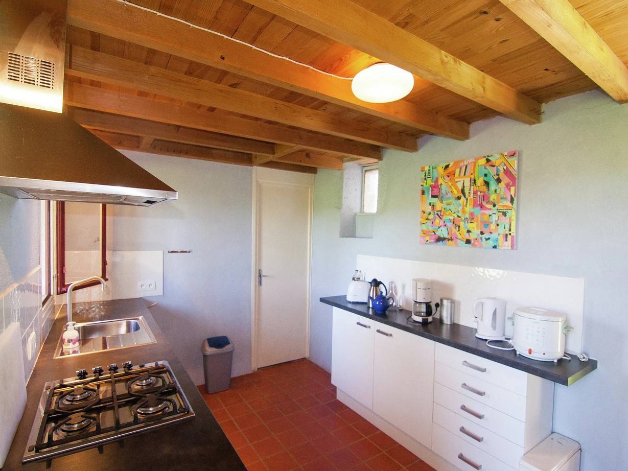 Die separate, voll ausgestattete Küche bietet alles, was Sie für einen gelungenen Urlaub benötigen: vom amerikanischen Kühl-/Gefrierschrank über Nespresso-Maschine, Heißluftfritteuse, Mikrowelle, Geschirrspüler, Toaster, Wasserkocher und Mixer. So können Sie mühelos französische Spezialitäten zubereiten und genießen. Für gemütliche Abende sorgt ein Kaminofen im Wohnzimmer, und zum Entspannen steht Ihnen ein kleiner Fernseher zur Verfügung.