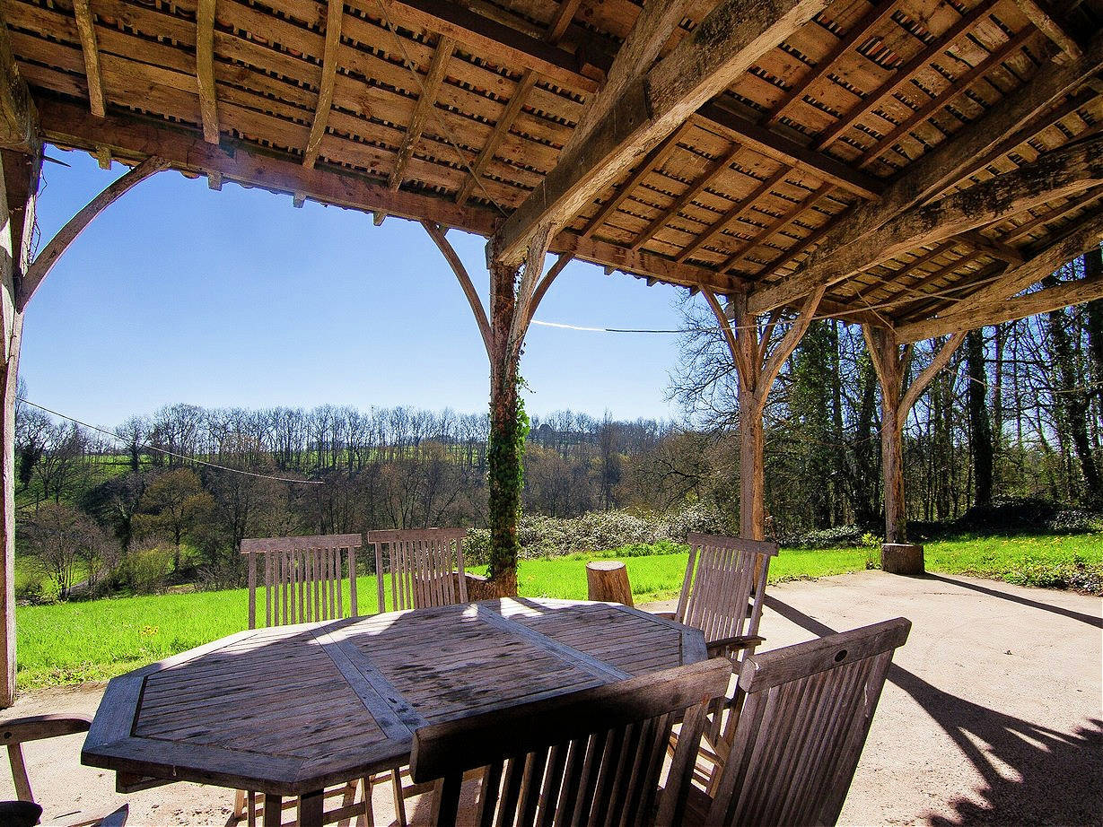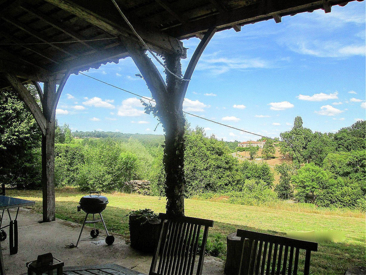 La Bergerie du Sigoules verfügt über eine große, charakteristische überdachte Terrasse mit Kamin und Blick ins Tal. Hier können Sie eine Mahlzeit genießen oder bei einem Glas Wein entspannen. Die Terrasse ist von der Küche über eine Außentreppe oder vom Garten aus erreichbar. Ein großer Rasen, der in ein Waldstück übergeht, umgibt das Haus und bietet Kindern einen sicheren Spielplatz. Auf der Terrasse finden Sie eine Tischtennisplatte und eine gemütliche Sitzecke. Das Haus ist geräumig, hell und versprüht den Charme vergangener Zeiten.