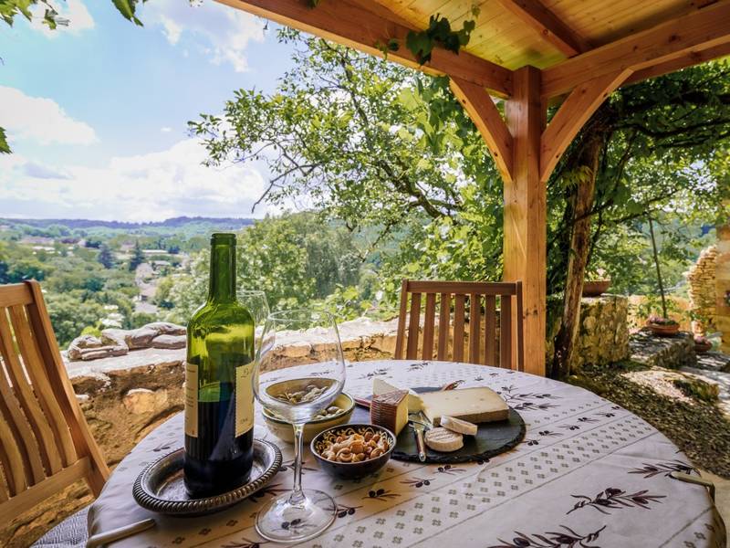 Das Gite Domme ist ein Ferienhaus mit privatem Pool für 6 Personen direkt unter der Stadtmauer der Bastide Domme. Domme selbst und die gemütliche Stadt Cenac sind zu Fuß erreichbar. Hier finden Sie alle Annehmlichkeiten wie Supermarkt, Metzgerei, Bäckerei , Post, Restaurants. Gite Domme wurde um 1890 erbaut und ist wie ein Deichhaus entlang eines Felsens gebaut und besteht aus 3 Ebenen. Von der Terrasse haben Sie einen fantastischen Blick über die hügelige Landschaft.