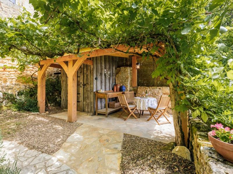 Der Terrassengarten besteht aus 3 Ebenen. Es gibt einen schönen privaten Pool, in dem Sie sich an heißen Tagen abkühlen können, und einen überdachten Bereich mit Terrasse und eine separate Terrasse unter dem Walnussbaum mit Esstisch. Der Garten mit fantastischer Aussicht ist nach Süden ausgerichtet und bietet viel Sonne und Schatten, wo Sie Ihren Urlaub genießen können. Das Gite Domme befindet sich in der Region Périgord Noir, Teil des Departements Dordogne, in der Nähe der Städte Domme, Cénac, Daglan und Castelnaud. Diese Region ist auch bekannt für ihre unzähligen Burgen, Flüsse und Bäche, Gärten, Bastiden, Höhlen, mittelalterlichen Städte, Märkte und natürlich die Trüffel, Walnüsse und Gänseleberpastete.