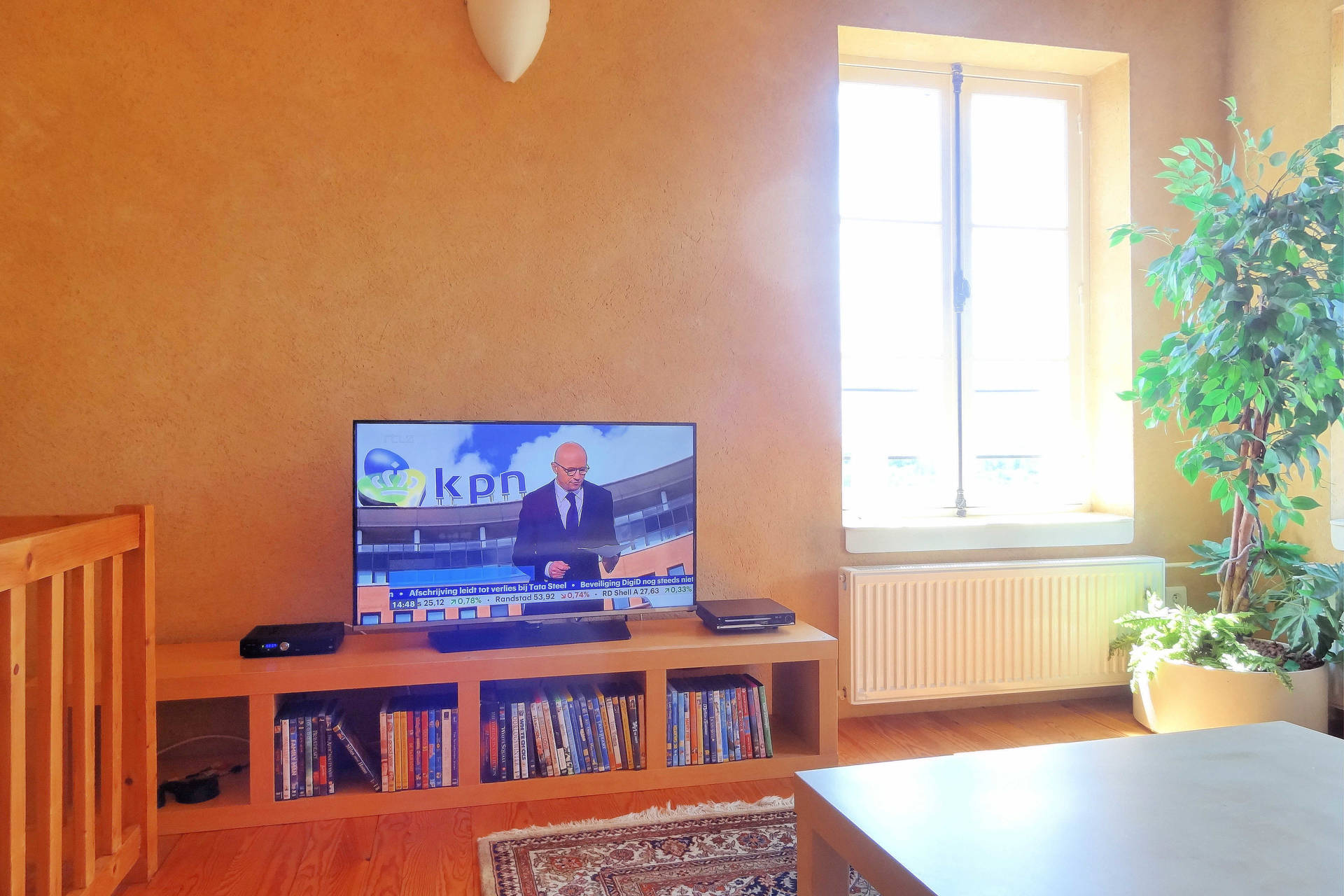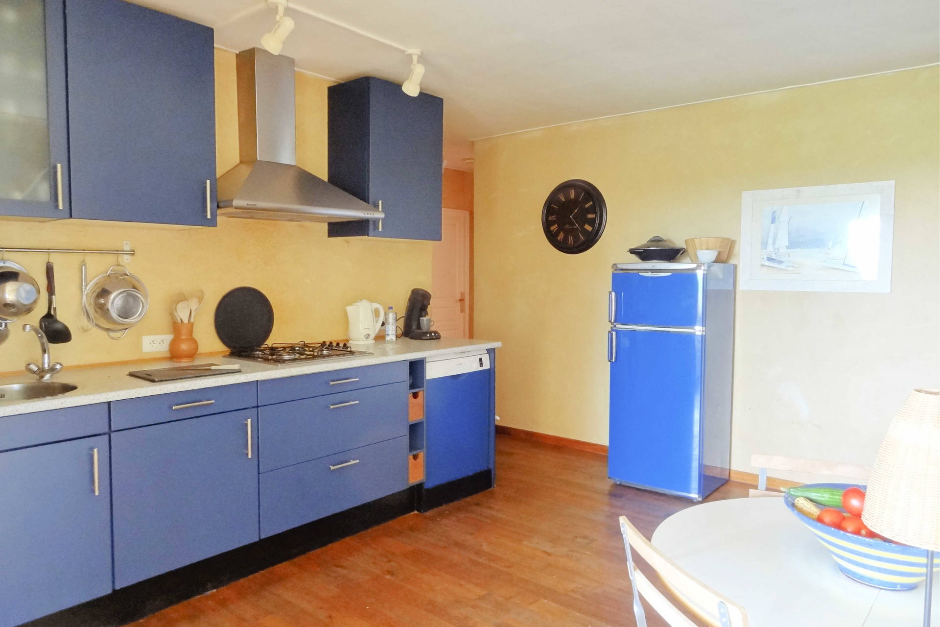 Im Erdgeschoss befindet sich das gemütliche Wohnzimmer mit rundem Esstisch und bequemer Sitzecke. Französische Türen führen direkt auf die überdachte Terrasse. Die voll ausgestattete Küche bietet alles, was Sie brauchen: Backofen/Mikrowelle, Geschirrspüler, Kühlschrank mit großem Gefrierfach, Kaffeemaschine, Wasserkocher und Senseo-Kaffeemaschine.