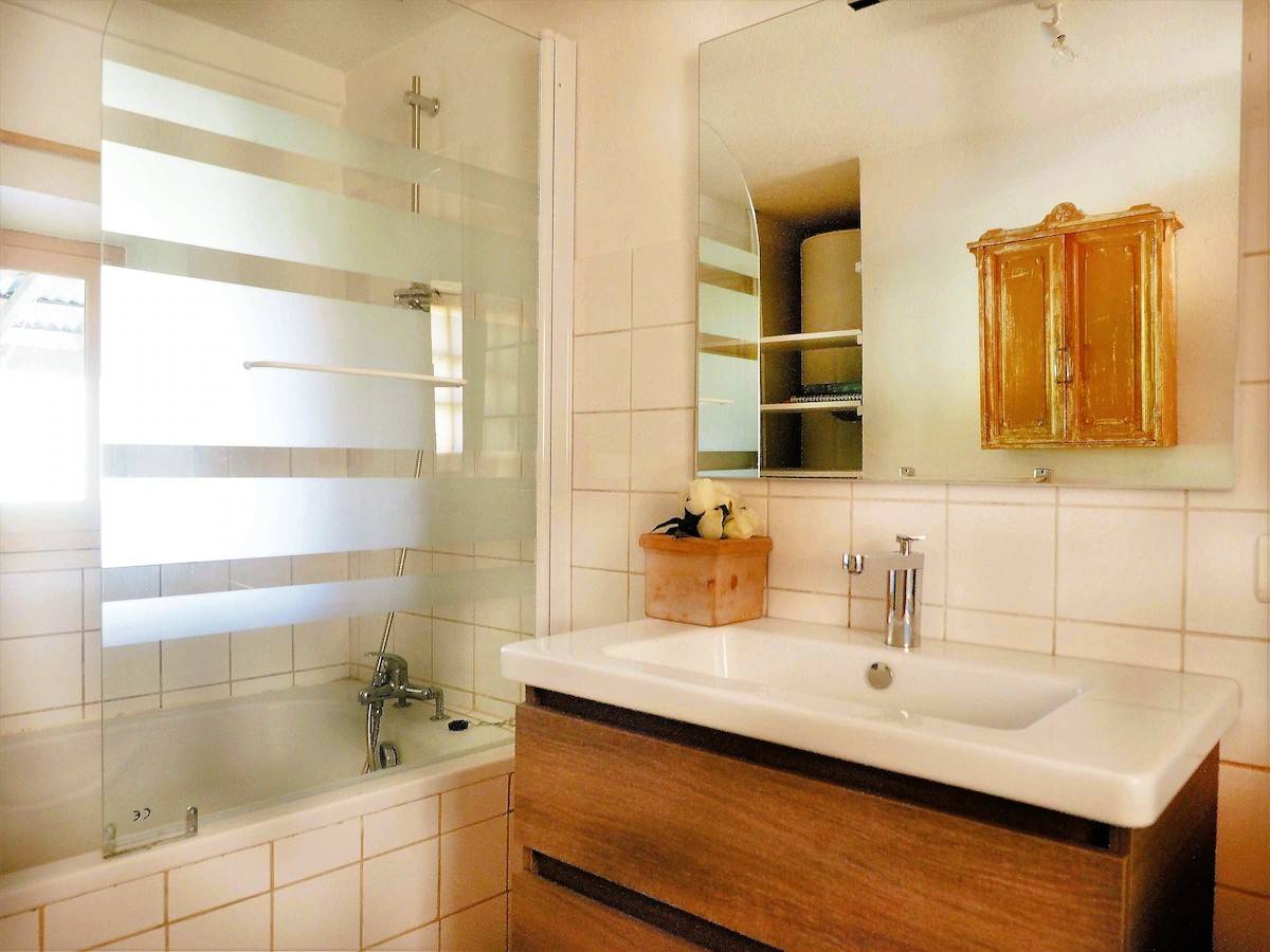 Im Erdgeschoss befindet sich das erste Schlafzimmer mit einem Doppelbett und ein Badezimmer mit Badewanne und Dusche. Der erste Stock hat 2 Schlafzimmer. 1 Schlafzimmer mit einem Doppelbett und ein weiteres Schlafzimmer mit einem Doppelbett und einem zusätzlichen Etagenbett (dieses Schlafzimmer ist ideal für Kinder). Das Doppelbett befindet sich in einem separaten Bereich, es gibt jedoch keine Tür dazwischen. Das Badezimmer ist mit einer Toilette und einer Dusche ausgestattet.
