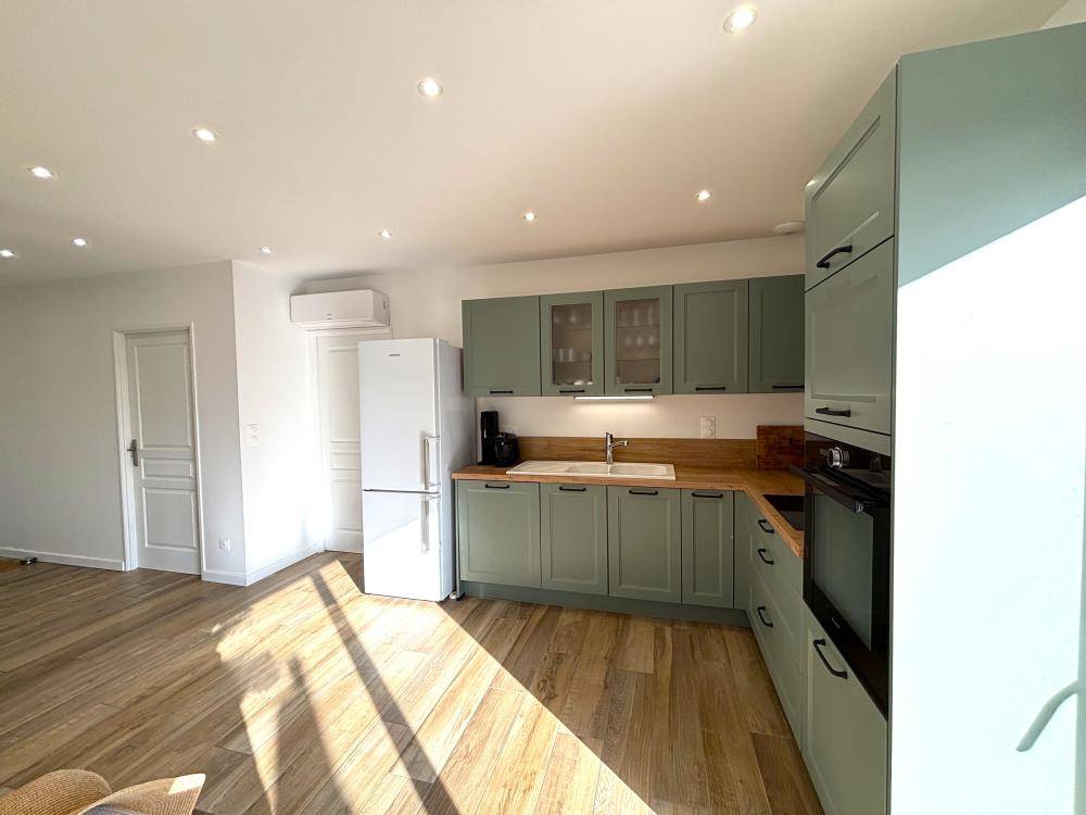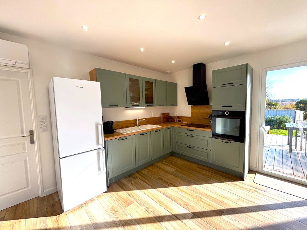 Im Inneren erwarten Sie ein helles und geräumiges Wohnzimmer, eine voll ausgestattete offene Küche, zwei komfortable Schlafzimmer und ein modernes Badezimmer. Für zusätzlichen Komfort ist das gesamte Haus klimatisiert, und ein gemütlicher Holzofen sorgt an kühleren Abenden für wohlige Wärme.