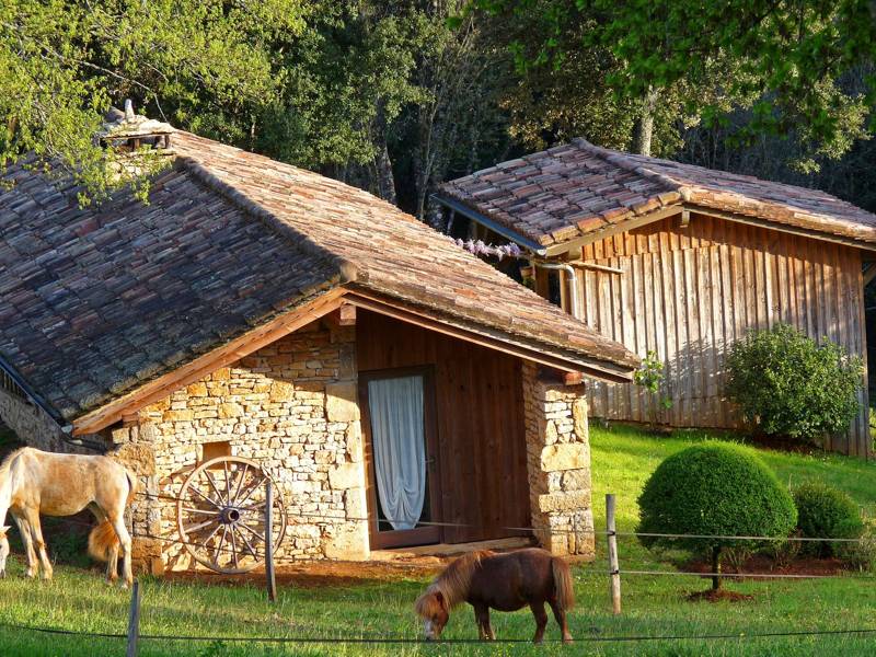 Die kleine Ortschaft, Le Hameau mit ihren charmanten, für den Baustil im Périgord typischen alten Häusern, liegt unweit des mittelalterlichen Städtchens Sarlat mit Blick über das Dordogne-Tal. Vom Hügel aus genießen Sie einen wundervollen Ausblick über das mehrere Hektar große, eichen- und kieferbestandene Grundstück. Die hübschen und vom Einrichtungsstil her individuell gestalteten Ferienhäuser liegen inmitten der Natur, ideal zur Entspannung und Erholung, weiterhin finden Sie hier Haustiere zur Freude der Kinder und einen Gemüsegarten für frische und gesunde Kost.