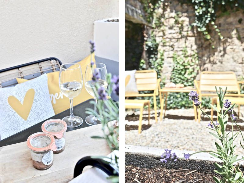 Über die kleine überdachte Veranda vor der Haustür gelangen Sie direkt in den Garten. Mehrere gemütliche Terrassen in der Sonne oder überdacht im Schatten. Können Sie sich vorstellen, am Ende des Tages mit einem guten Glas guten französischen Weins und einem Stück Käse unter der Veranda zu sitzen?