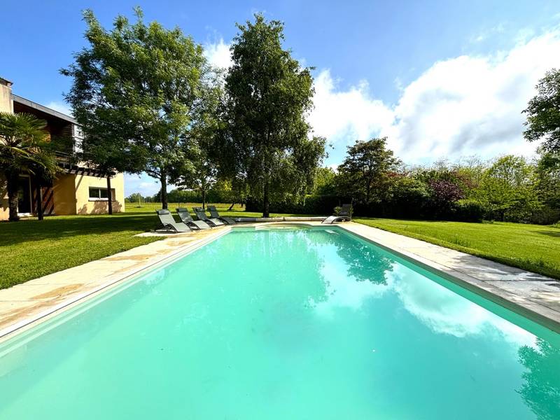 Maison Manaurie liegt in einem attraktiven Garten von mehr als 5000 m². Es gibt eine große Holzterrasse mit Pergola und Gartenmöbeln und der schöne private Swimmingpool ist der Ort, an dem Sie absolute Ruhe und Entspannung finden. Es gibt mehrere Plätze, die sich sehr gut für Ballspiele eignen und die jahrhundertealten Bäume spenden viel Schatten. Der Pool ist völlig privat und nur für Ihre alleinige Nutzung bestimmt. Mit einer Größe von 9x4,5m und einer Tiefe von 140 cm (flacher Boden). Der Pool ist mit einer Alarmanlage gesichert und mit Liegestühlen und Sonnenschirm ausgestattet. An der Vorderseite des Hauses ist im Carport Platz für zwei Autos. Für zusätzliche Unterhaltung gibt es eine Tischtennisplatte.