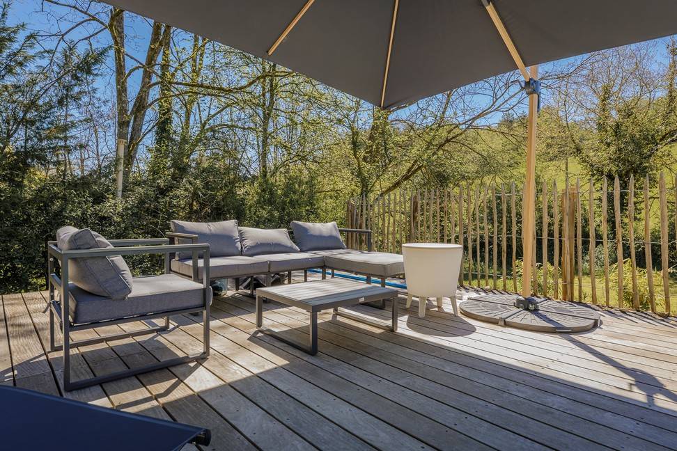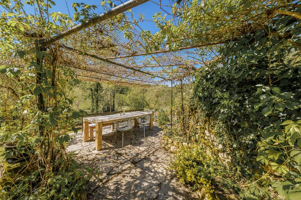 Der Garten erstreckt sich über 3 Ebenen. 1. Ebene mit Esstisch und Blick über die Hügel, 2. Terrassengarten mit Tischtennisplatte und Außendusche und auf der unteren Ebene gibt es einen schönen beheizten Privatpool von nicht weniger als 9 x 4 Metern und 150 cm Tiefe. Der Garten verfügt über ein modernes Lounge-Set, wo Sie entspannen und schwimmen können. Es gibt auch einen großen Garten, in dem Sie Fußball oder andere Spiele spielen können. Schließlich ist ein Teil des Gartens eingezäunt, was praktisch ist, wenn Sie einen Hund mitbringen.