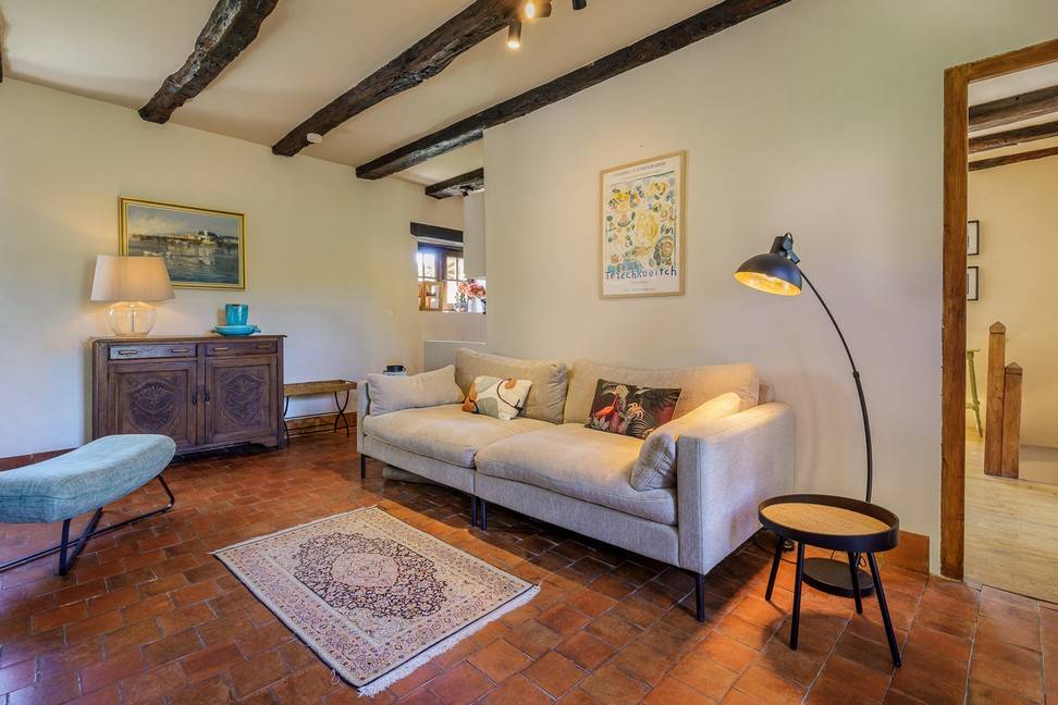 Maison Savignac verfügt über ein gemütlich eingerichtetes Wohnzimmer mit einem Herd. Von der Küche aus gelangen Sie direkt auf die Terrasse. Das Ferienhaus verfügt über 2 Schlafzimmer. Schlafzimmer 1 verfügt über ein Doppelbett (160x200). Schlafzimmer 2 verfügt über 2 Einzelbetten, die auch als Doppelbett zusammengestellt werden können (Einzelbetten 180x200). Das geräumige Badezimmer und die Toilette befinden sich im Keller.