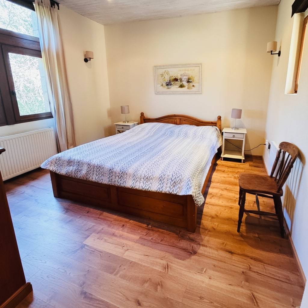 Im Erdgeschoss gibt es eine geräumige offene Küche und einen schönen Essbereich und ein großes Wohnzimmer mit Kamin. Die Küche ist mit Herd, Backofen, Geschirrspüler, Kühlschrank mit Gefrierfach, reichhaltigem Koch- und Essgeschirr ausgestattet. Rechts vom Esszimmer befindet sich eine separate Toilette und ein Badezimmer mit Dusche, Waschmaschine und Trockner. Im 1. Stock, erreichbar über eine Treppe von der Küche und dem Esszimmer, befindet sich ein Badezimmer mit Toilette und Dusche.