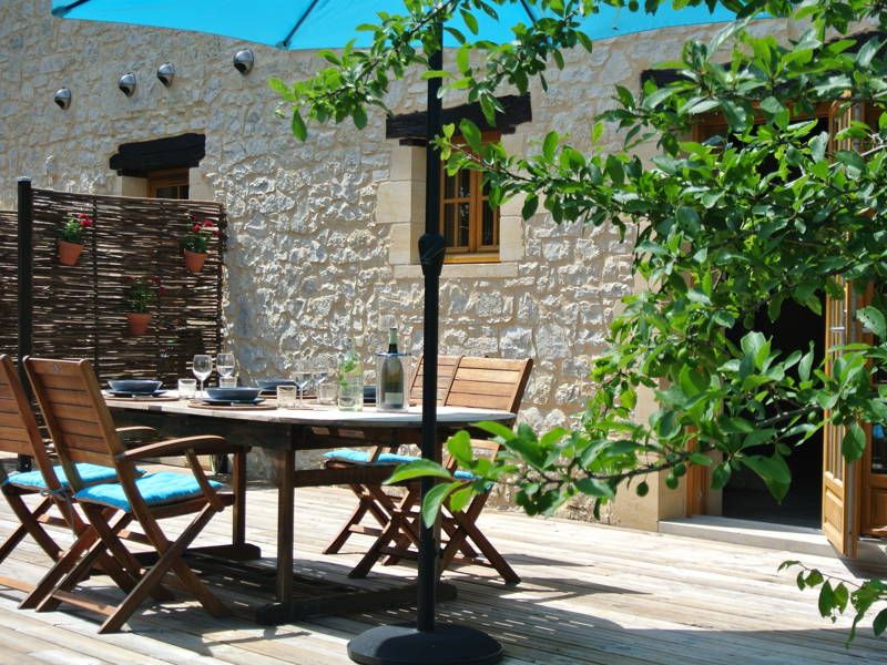 Es gibt 2 Terrassen. Auf der hinteren Terrasse, 35 m², finden Sie Teakholzstühle mit Esstisch, wo Sie Ihr Frühstück in der Morgensonne genießen oder am warmen Nachmittag im Schatten ein Buch lesen können. Die großzügige Terrasse bietet Ihnen einen schönen Blick auf den Swimmingpool und den angelegten Garten mit verschiedenen Obstbaumarten. An der Vorderseite des Ferienhauses können Sie den ganzen Nachmittag und Abend die Sonne genießen. Mesange Blue ist das ganze Jahr über buchbar und eignet sich auch sehr gut, um eine angenehme Zeit mit ein paar Freunden zu verbringen.