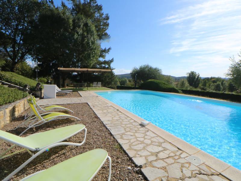 Das Ferienhaus verfügt über einen Rasengarten mit Blumen. Der Garten ist komplett umzäunt und Haustiere sind willkommen. Die beiden Terrassen, eine auf Küchenebene und eine auf Schlafzimmerebene, sind mit Tisch, Stühlen und einer Sitzecke ausgestattet. Der große, 14 x 7 Meter große Swimmingpool befindet sich auf der anderen Seite des Gartens und ist von morgens bis zum späten Nachmittag sonnig. Der Pool wird mit den Eigentümern geteilt, deren Ferienhaus sich auf demselben Grundstück befindet. Sie können Ihr Auto direkt neben dem Ferienhaus parken.