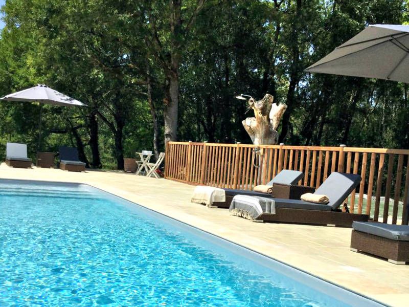 Rouge-queue noir**** ist ein Luxus-Ferienhaus für bis zu 7 Personen und liegt auf einem kleinen Anwesen an der Grenze zwischen Lot und Dordogne. Auch weil alle Schlafzimmer über ein eigenes Bad verfügen, eignet sich die Gîte beispielsweise sehr gut für einen Urlaub mit zwei Familien.