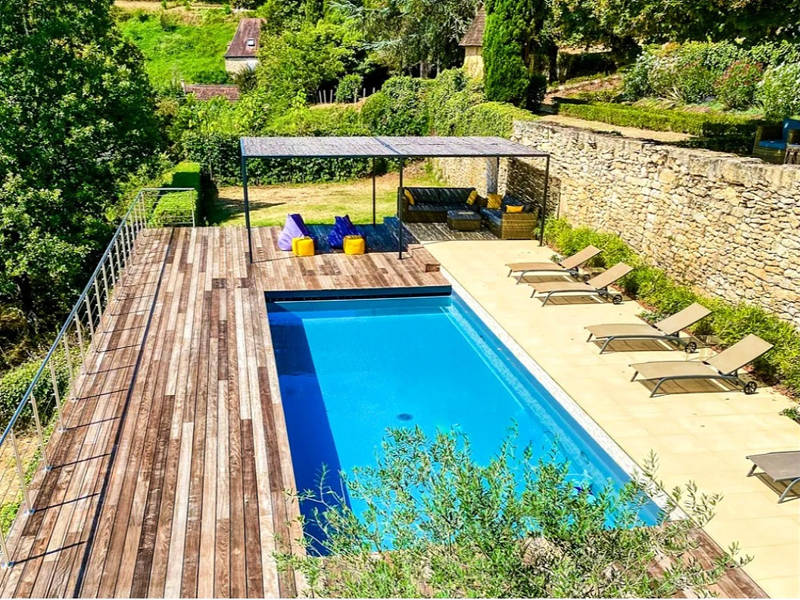 Im unteren Teil des Gartens befindet sich der beheizte Swimmingpool (10 x 4 m), umgeben von Sonnenliegen, Sitzsäcken und einer Lounge-Ecke unter einer Pergola. Außerdem gibt es eine Boulebahn und eine Tischtennisplatte. Parkplätze stehen auf dem Gelände zur Verfügung (maximal 6 Autos).