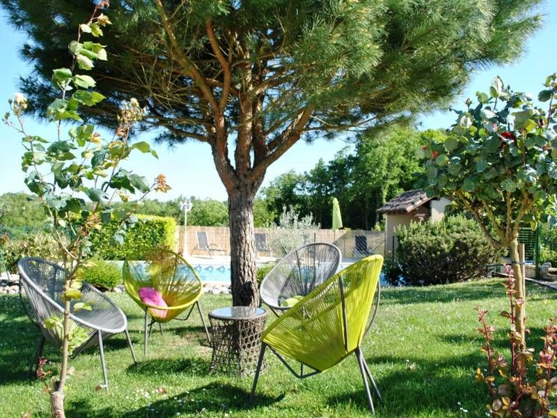 Eine große und gemütliche Terrasse, wo Sie speisen können. Der Pool hat viel Platz, wo man sich in der Sonne entspannen kann. Im Garten gibt es mehrere Sitzbereiche, wo Sie in der Sonne oder im Schatten von ein Glas Wein genießen können.