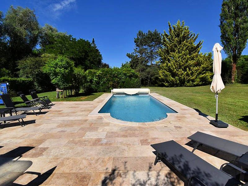 Das weitläufige Grundstück ist sehr gepflegt und mit zahlreichen Sträuchern, altem Baumbestand und Rosen bepflanzt. Der private Pool ist von Mai bis September beheizt und hat eine Fläche von etwa 1 m20 und ein tiefes Ende von 2 m. Es ist durch einen schwebenden harten Deckel gesichert. Auf der Terrasse rund um den Pool finden Sie einen Grill, Tisch und Stühle, Sonnenliegen und Sonnenschirme. Die Terrasse ist der ideale Ort, um sich zu entspannen und von die Aussicht zu genießen!