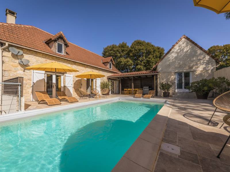 Villa Reilhaguet ist ein Landhaus für 8 Personen mit privatem Pool. Die Villa befindet sich in den Wäldern auf den Hügeln in der Nähe von Souillac versteckt, mit Blick auf einen grünen Tal. Wunderbar renoviert, mit viel Liebe für die lokale Stein des Périgord. Keine Notwendigkeit, weit für Ihr Badezimmer zu gehen, weil jedes Schlafzimmer ein privates Luxus-Badezimmer hat. Das ist wie in einem 4 Sterne Hotel, aber mit der Ruhe eines Hauses, das allein und friedlich an einem geheimen Ort versteckt  steht ... Ideal, wenn Sie im Urlaub mit Freundengehen, aber doch Ihre Privatsphäre haben wollen.