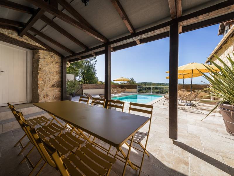 Große überdachte Terrasse mit freiem Sonnenuntergänge ... Terrasse am Pool. Der private Swimmingpool befindet sich zwischen dem Haus und den beigefügten Scheunen, also kein Wind. Sie können sich entspannen bei einem Glas Rose ... Sie gehen von Ihrem Schlafzimmer aus direkt auf die Terrasse von Ihrem privaten Pool! Wenn Sie Ihr Französisch Abendessen vorbereiten, können Sie Ihre Kinder beim Spielen im Pool beobachten. Das ist wie der Urlaub sein soll ...! Es gibt Gartenmöbel, Grill, Liegestühle, Sonnenschirme.