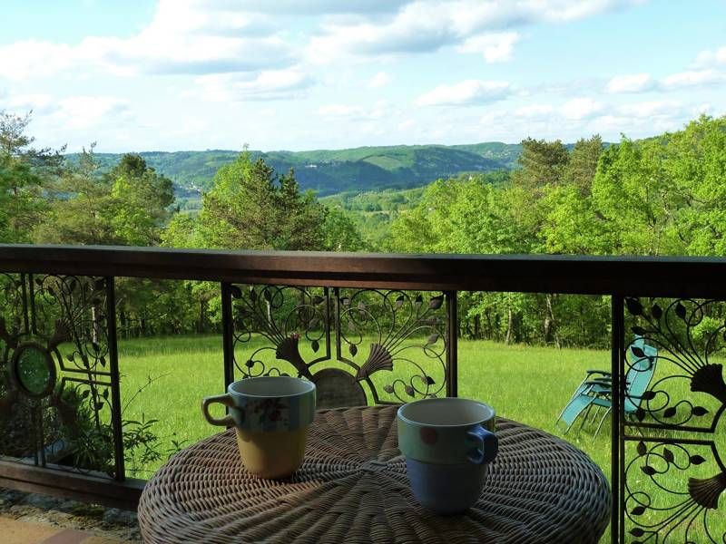 Die Ankunft am Haus erfolgt über eine Forststraße, die dann in den offenen Raum führt, der von Sonnenlicht durchflutet wird. Die überdachte Terrasse ist ideal für ein entspannendes Mittagessen im Sommer oder zum Entspannen auf den Sonnenliegen. Die zweite Terrasse ist der ideale Ort zum Sonnenbaden, während Sie die schöne Aussicht über das Tal der Dordogne genießen. Es gibt Parkplätze für 1 bis 2 Autos.