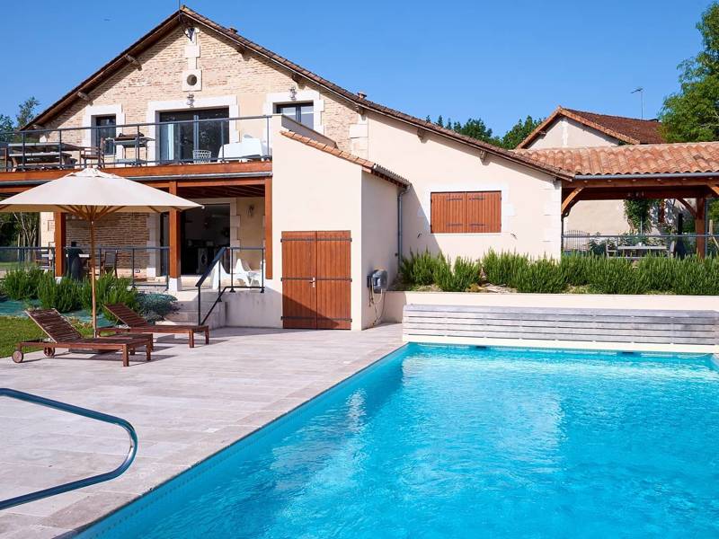 The family-friendly gites are located in the heart of the Foret de La Double national park in the Perigord blanc. The properties have landscaped gardens and share outdoor space and the pool terrace. It is the perfect place for a relaxing family holiday. The gites are equipped with high quality furniture.