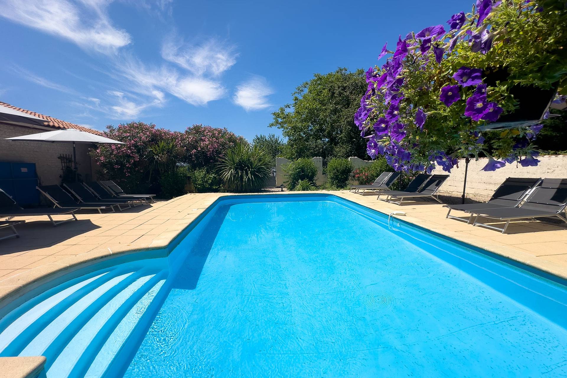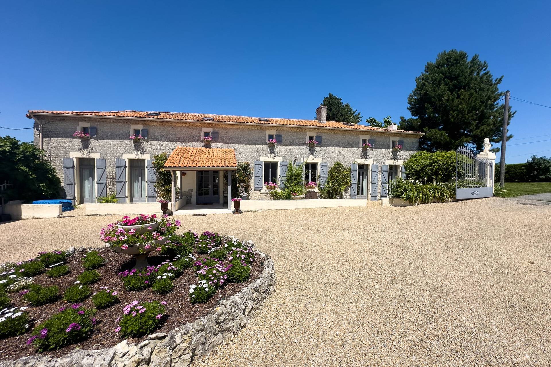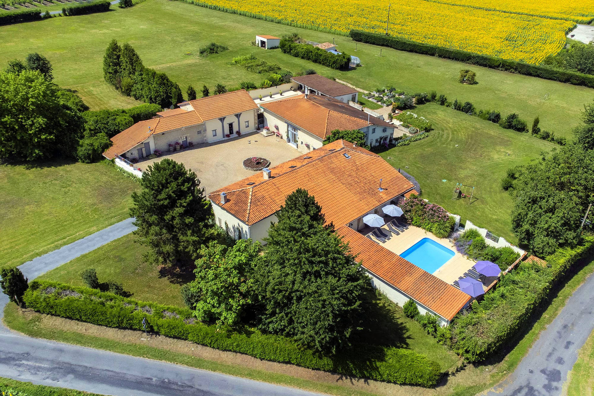 Domaine Chez les Rois is located in a former farmhouse dating from 1842. A beautiful holiday home for 22 people located in the Charente. The beautiful rolling landscape is rightly called the 'Tuscany of France'. The evenings and nights are a bit cooler due to a fresh breeze from the Atlantic Ocean just 65 km away.