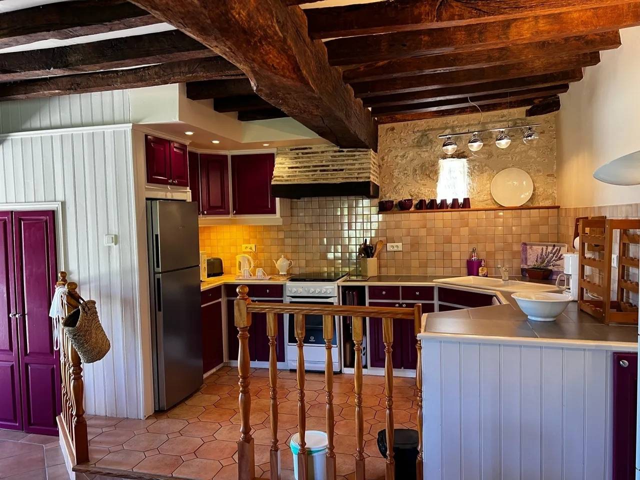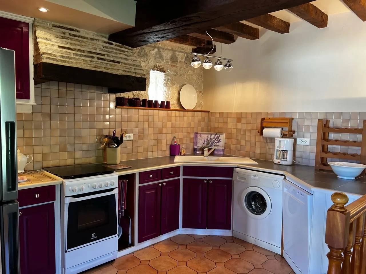 The ground floor in Le Chai is very spacious and because it is on the north side, it stays nice and cool. The raised kitchen is half open and closes directly to the dining room. Le Chai has all the comforts of home and is a great space to use.