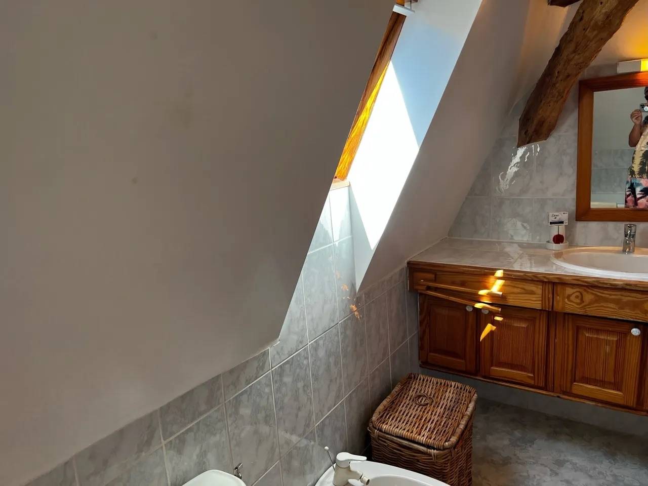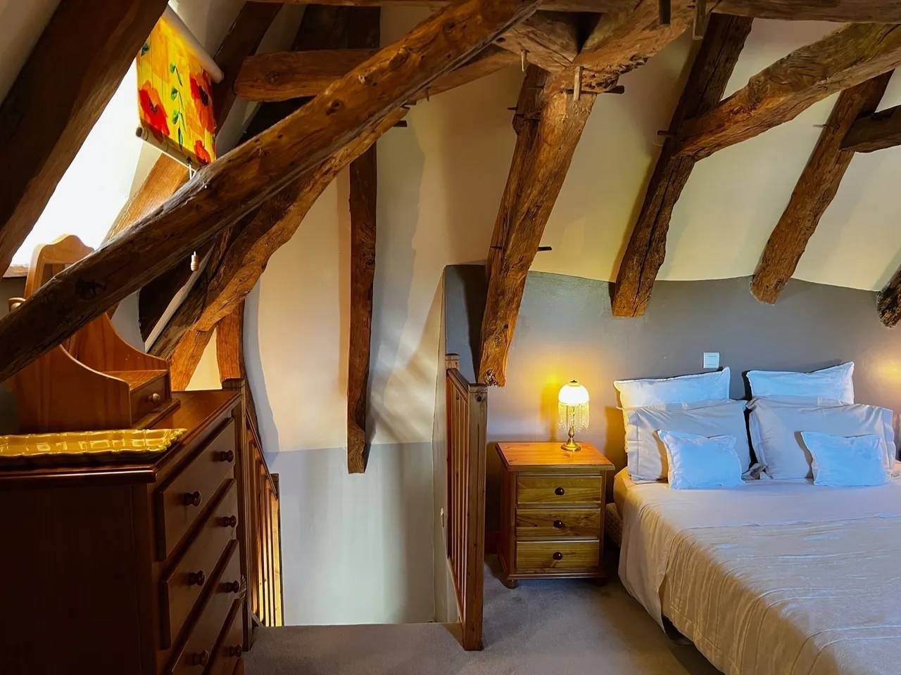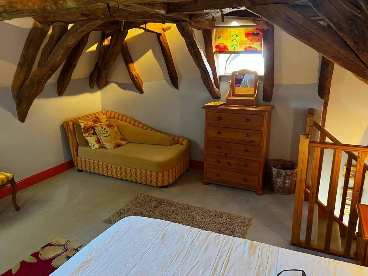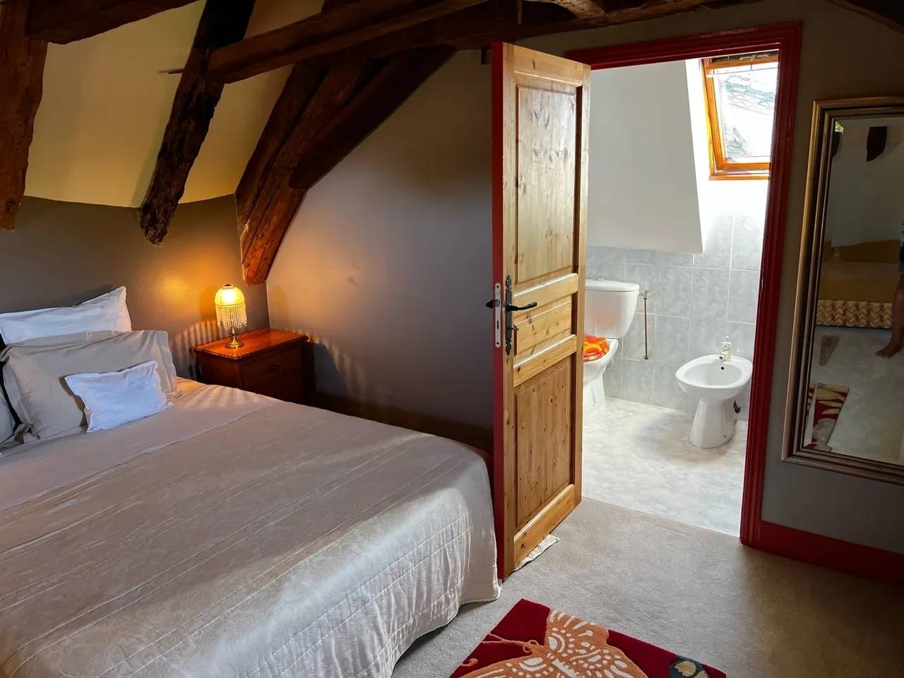 The bedroom is located on the 1st floor. The comfortable 1.6m bed is of good quality and the room is nicely decorated. The bathroom has a toilet, bath with hand shower attachment, bidet and washbasin. The windows overlook the vines with far reaching views over rolling farmland, the goldfish ponds and ancient rooftops.