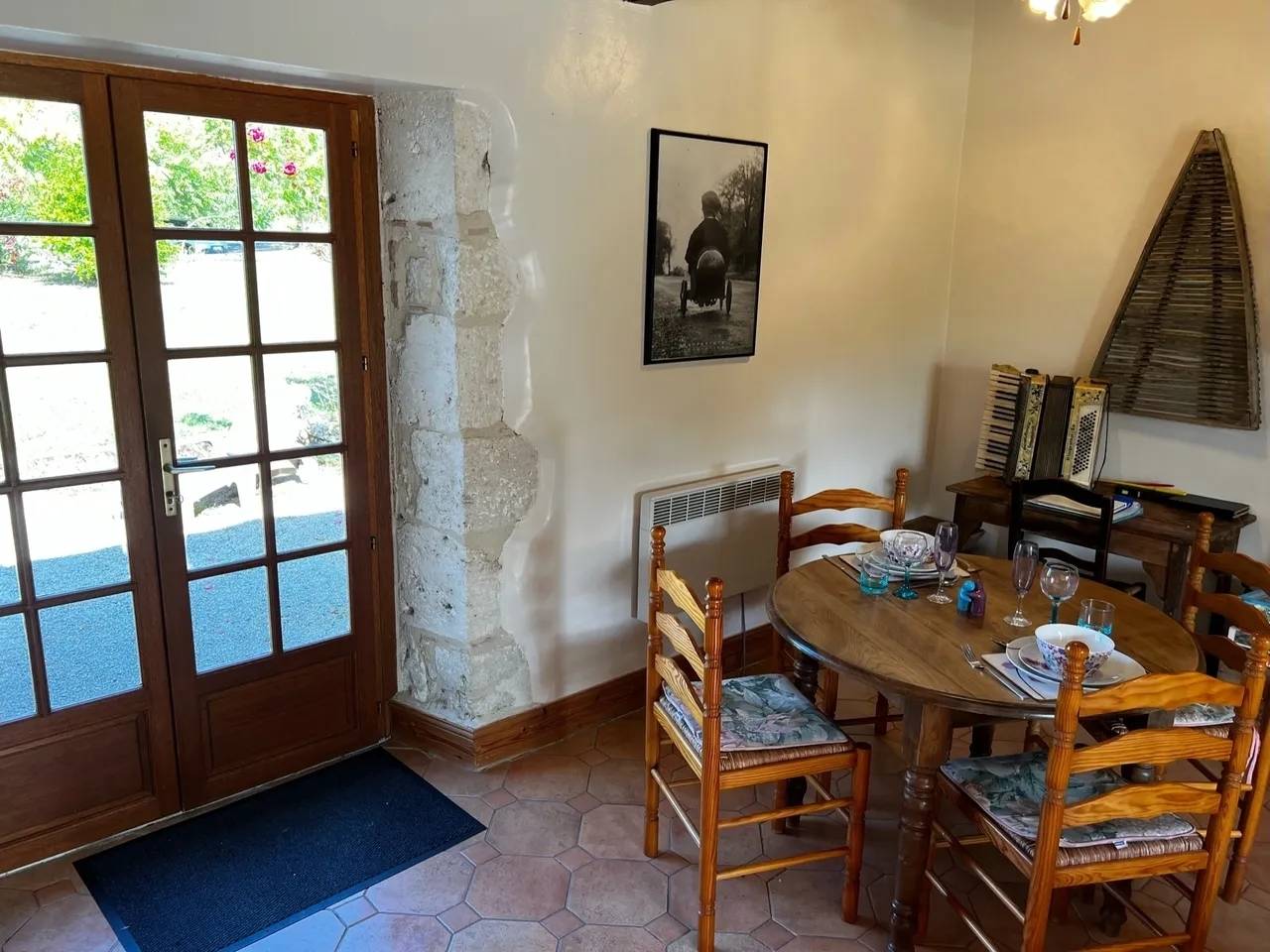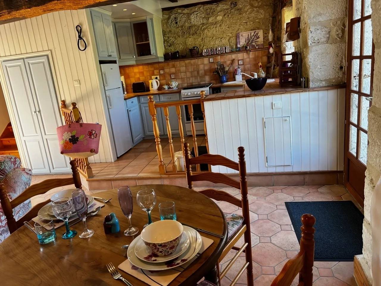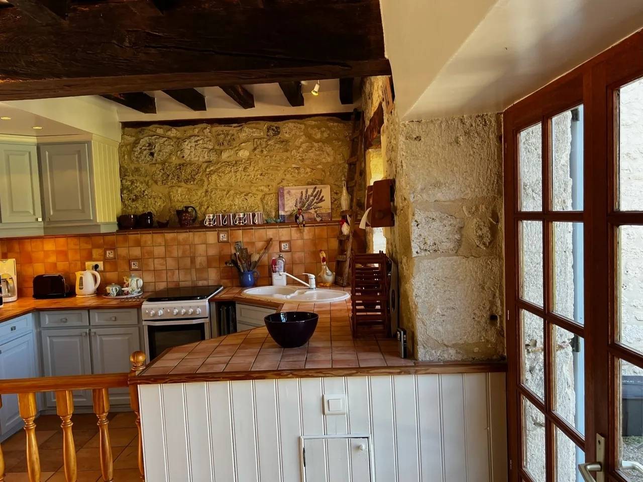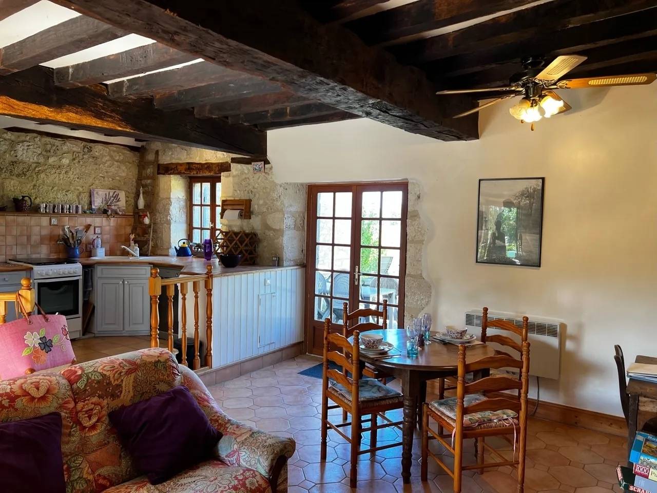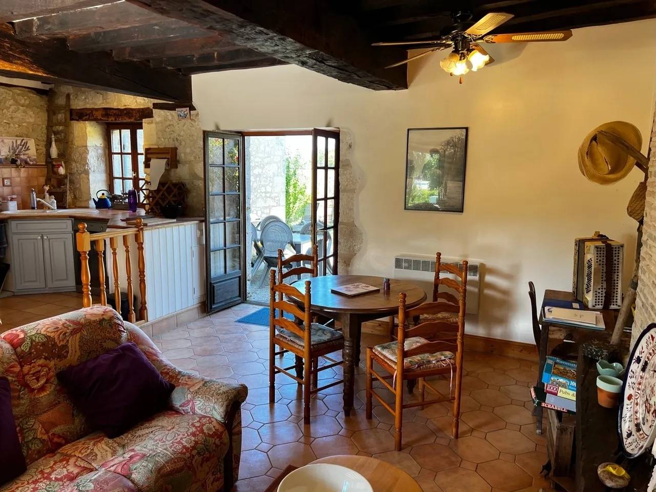 Le Sauvignon is a luxury gite for 2 people. Through the glass doors you are led into a private courtyard which overlooks the vines to the front of the gite. At the rear of the gite you have views of the pool and spectacular sunsets. The gite is comfortably furnished. On the ground floor you will find an attractive room with double doors. It has a fully equipped raised kitchen, a comfortable and practical sitting and dining room and an old brick fireplace. On the first floor you will find a charming bedroom with a 1.6 m bed and en-suite bathroom with WC, bath with hand shower and washbasin. The beds are made for you. There is also a gas barbecue, sunbeds and a set of boules for each house