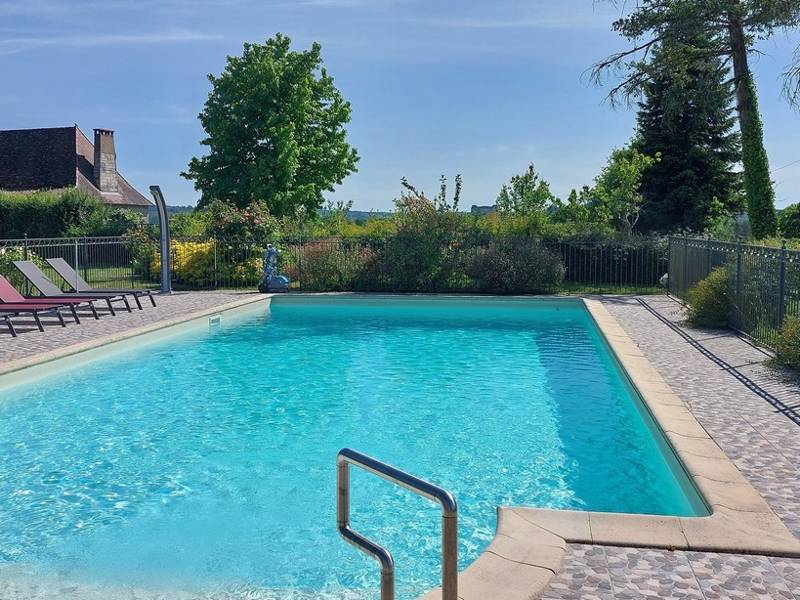 You have access to a garden with sun loungers, a cozy terrace, a barbecue, and private parking. From the terrace, you have a magnificent view of, among other places, Chateau Hautefort. There is a spacious saltwater swimming pool (6x12m) with sun terraces, loungers, parasols, and an outdoor shower, which is shared with the owners. There is also a herb garden, a small library, and a washing machine and dryer. The owners look forward to welcoming you as our guests and sharing this beautiful place. Important: