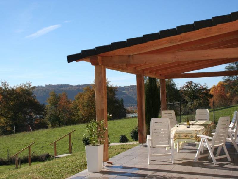 Het uitzicht vanuit het terras is fenomenaal, we hebben er, onder de overkapping, iedere morgen en avond van genoten. ’s Avonds ook diverse hertjes en hazen gespot in het land achter het huis, prachtig.