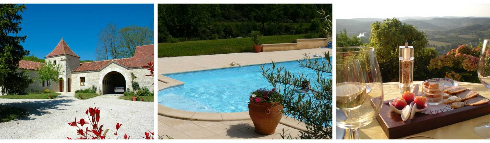 Near the border of the departments Dordogne and Lot you will find the domain La Cabane. The estate is situated in the Céou valley at a lot of 2,5 ha. You can rent 3 luxury homes with all comfort and a beautiful swimming pool (12 x 6 meters) with sun loungers. The quietness of rural countryside, doing absolutely nothing at the border of the swimming pool or a holiday were you visit all the famous touristic sites nearby.