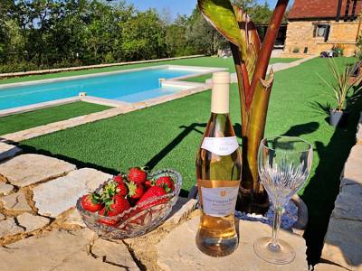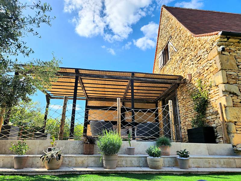 In the Golden Triangle of the Dordogne you will find this beautiful domaine La Trilogie D'or. Set atop a tranquil hillside, the enchanting holiday home offers a peaceful retreat in the heart of the fascinating Dordogne. With a beautiful private heated pool and a beautifully furnished holiday home, this is the perfect retreat in Castelnaud-la-Chapelle for an unforgettable experience.