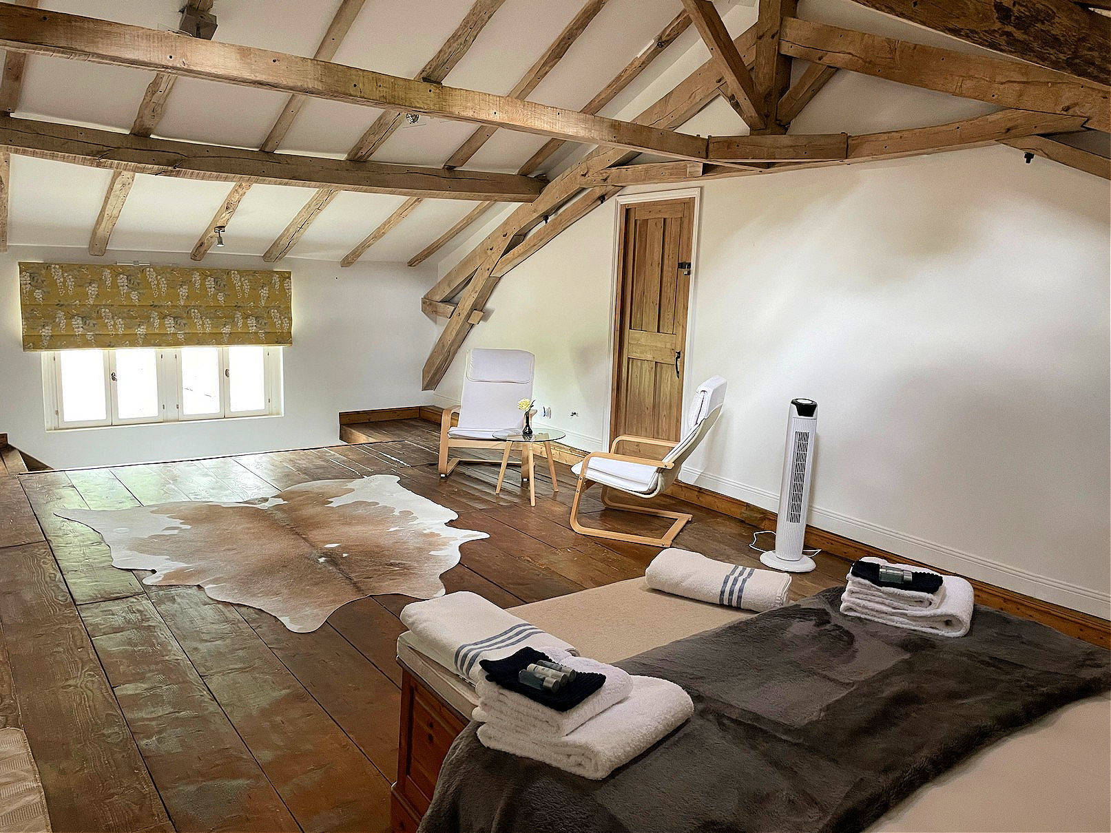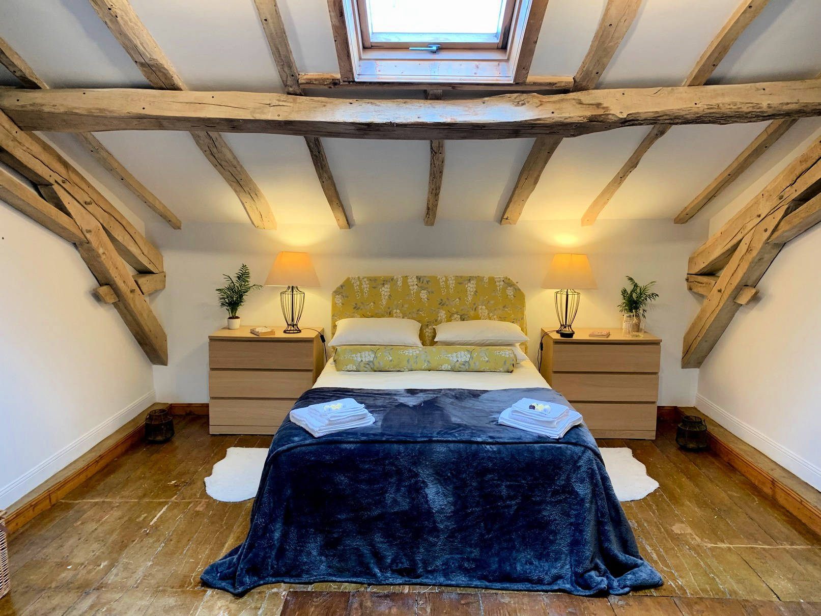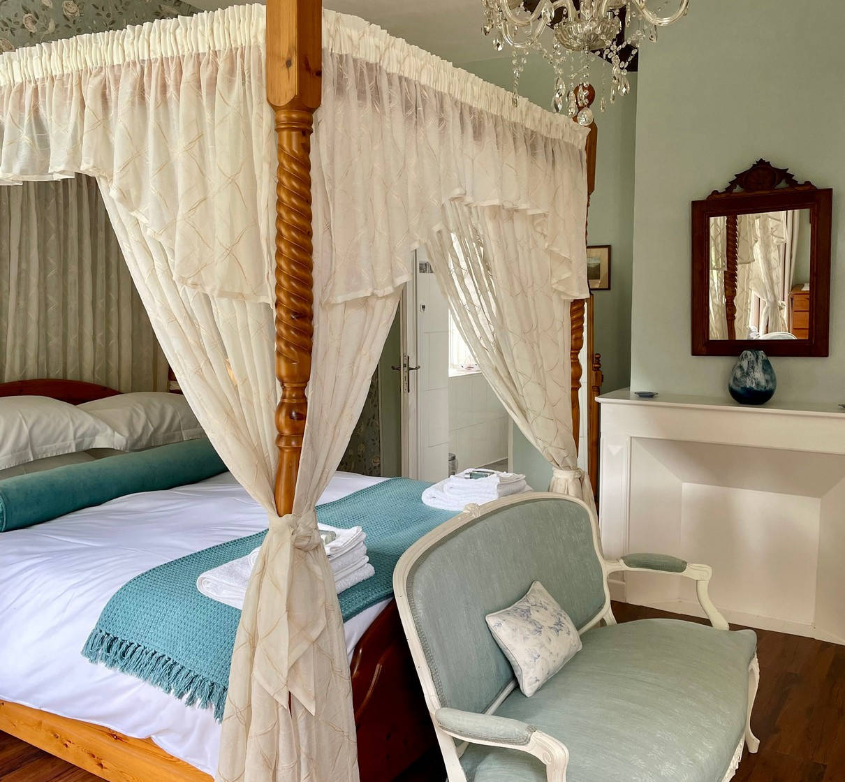 Bedroom 2 The Four Poster Bed: Tastefully decorated, this four poster bed is both luxurious and comfortable. Comes with a private bathroom and Alexa. Total size 35m²