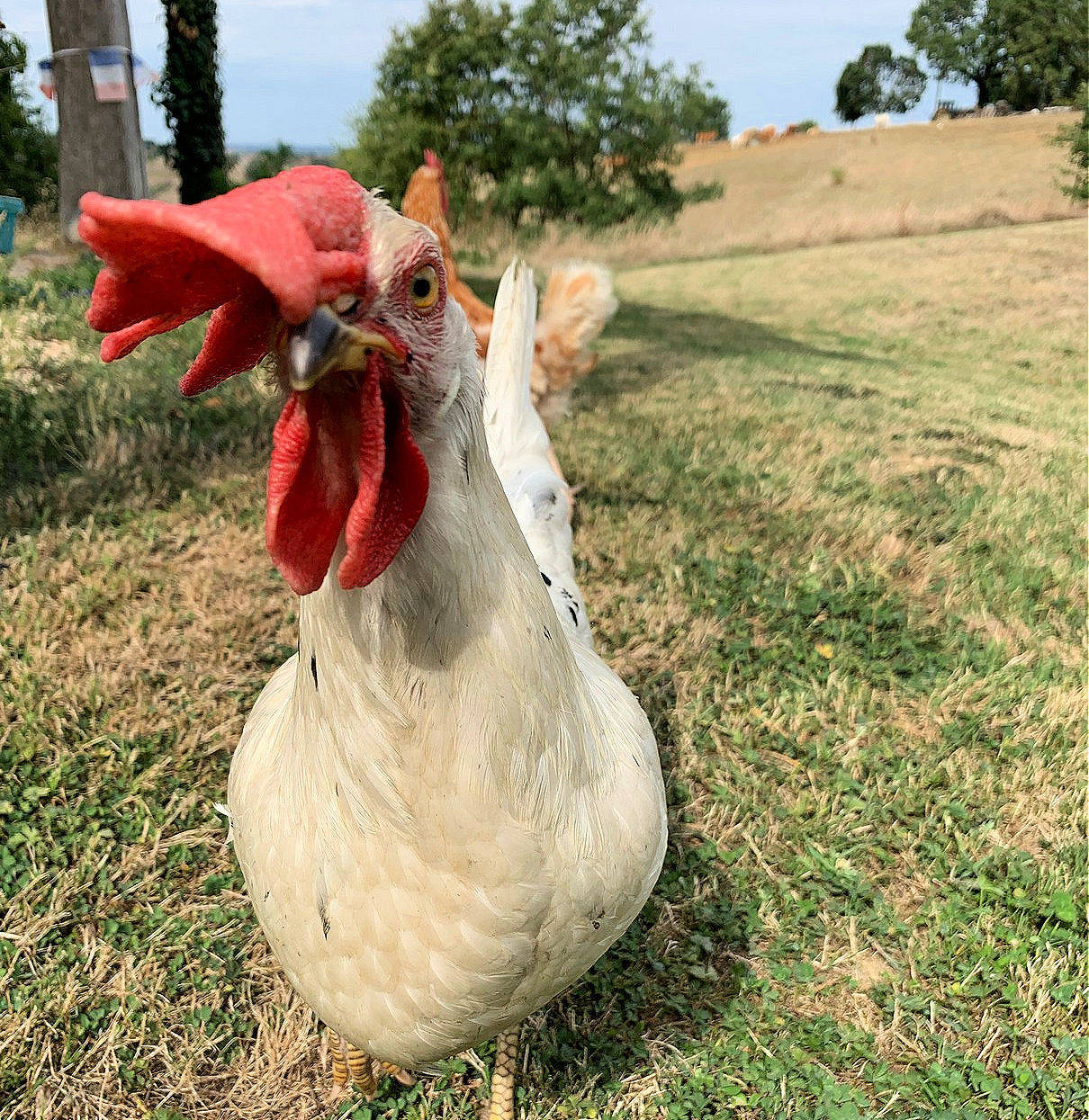 There is a large sunny terrace with a large outdoor table that seats 10 people. If it gets too hot, you can lower the awning. There is a large heated swimming pool 10x6 meters. Enjoy a cool dip after a refreshing shower or float on Freddie the Flamingo. Cleaned and maintained daily by the owners, open from 10am to sunset. Lawns and meadows in 1.5 hectares of grounds provide Le Manoir with space for lively family gatherings or quiet corners to relax. Enjoy the peace and quiet of the afternoon sun while reading a book from the library in the hammock under a shady bush. The chickens: Baby, Fluffy and BB, supervised by Pierre, provide fresh eggs every morning. Housed in their own loft.