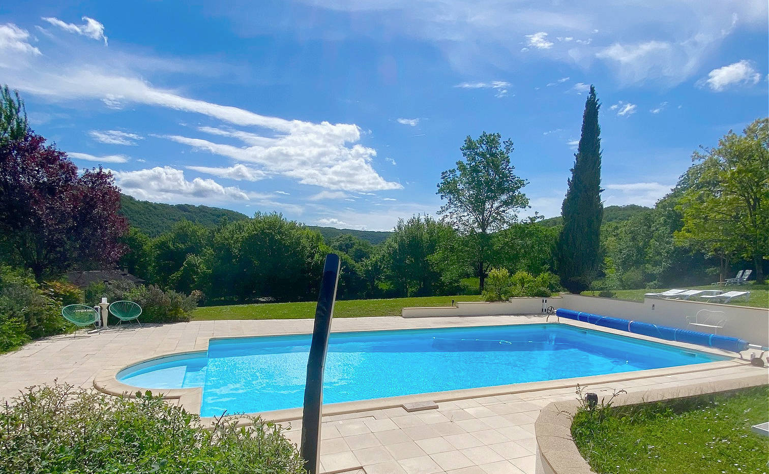 Domaine La Cabane is a small-scale and charming estate situated in the beautiful Dordogne/Lot region. Le Rossignol is a charming and comfortable holiday home for 4 people, ideal for a small family looking to enjoy peace, space, and nature. The estate features a large chlorine-free swimming pool with sun loungers, where you can relax and fully enjoy the serene surroundings.