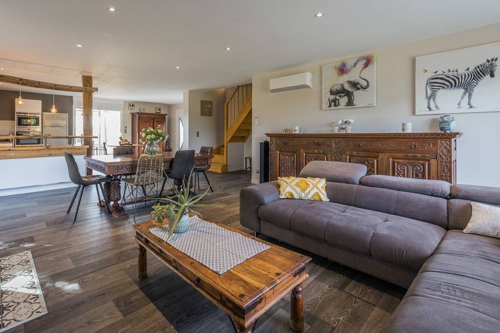 The whole house has air conditioning. The huge living room and open kitchen give you the opportunity to enjoy a cozy holiday together.