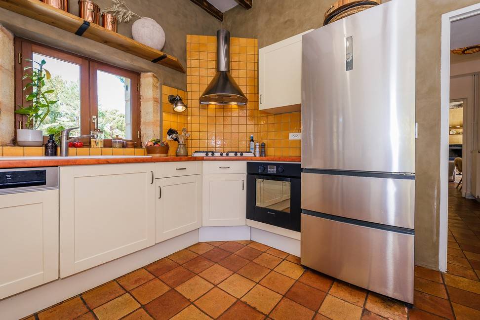 Maison Noah de Eyzies is suitable for 6 people and possibly 1 to 2 babies. The living room is comfortably and cosily furnished with a large fireplace, television and a radio / CD player. The kitchen is equipped with a dishwasher, 6 burner gas stove, electric oven, fridge, freezer, coffee maker and toaster. In the utility room of the house there is a washing machine, dryer and an ironing board with iron. The house has central heating and wireless internet is available everywhere (ADSL + WiFi). There is 1 cot and a high chair available.