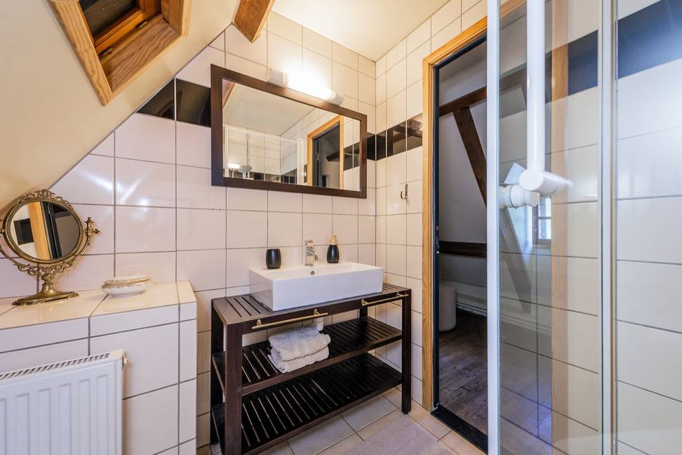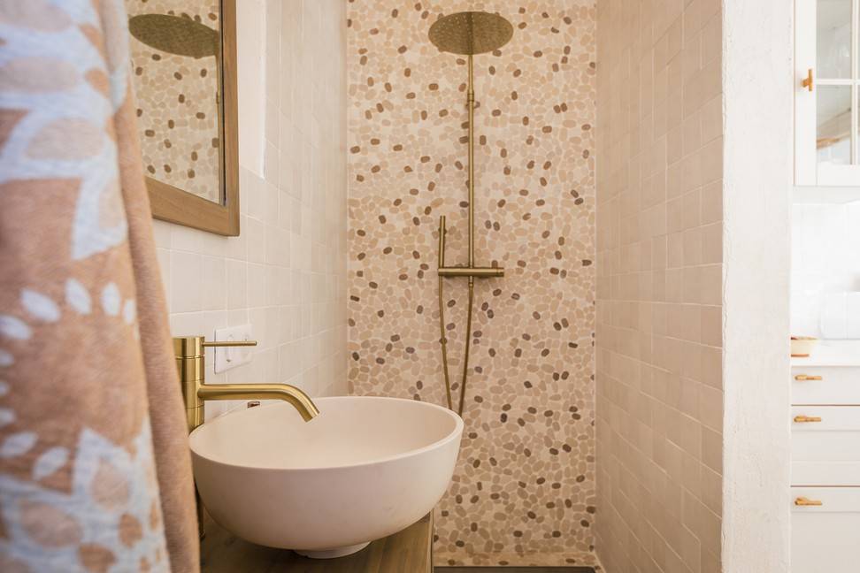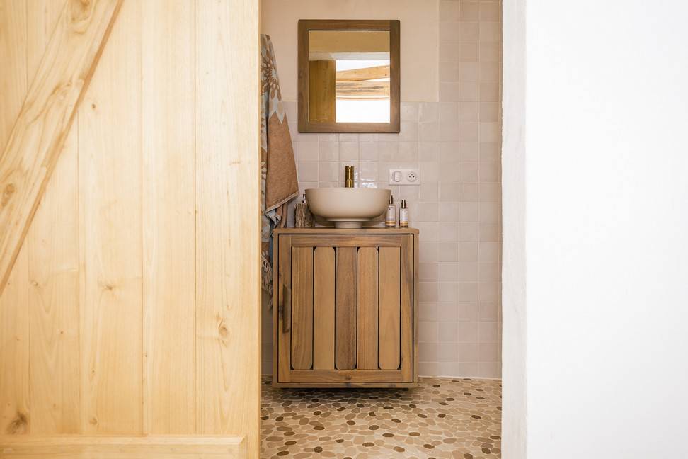 There are 3 spacious bedrooms on the first floor. Good fans have been installed in the bedrooms for your comfort. The rooms are all equipped with box-spring beds of 90 x 200 that can be put together into a double bed. There is 1 baby bed plus duvet. The house contains 2 toilets, one on the ground floor and one on the upper floor. Finally, there are 2 bathrooms, one with double sinks and a walk-in shower and one bathroom with a sink, toilet and shower cubicle.