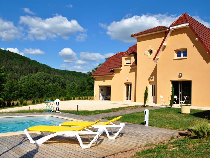 Villa Coly is a luxurious newly built house of 250m2 with a private pool, situated at 2 km from the center of the pretty village of Coly in the Perigord Noir, close to Montignac, Terrasson and Sarlat.