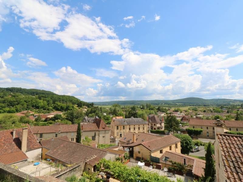 Wooden stairs lead from the first floor up to: a very large sitting room (terrestrial TV, video, DVD, radio - CD) with parquet flooring, exposed stone and beams. The lovely arched window has views over the rooftops of St Cyprien in the distance. The third bedroom with a double bed which has doors opening onto the upper terrace with steps up to the pool. The fourth bedroom with two single beds, is accessed from within the third bedroom, a bathroom, a separate toilet.