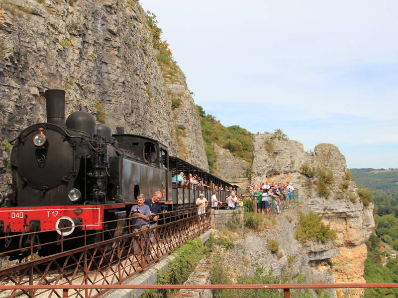The famous Dordogne river is nearby, meandering through beautiful cliff-hung gorges where you can rent a canoe and glide gently downstream, perhaps stopping off for a picnic on the riverbank and taking a swim. Take your binoculars and watch the buzzards and red kite soar above you or search out the wild orchids of the Causse. There is a tourist train from Martel which takes in the spectacular scenery of the Dordogne valley.