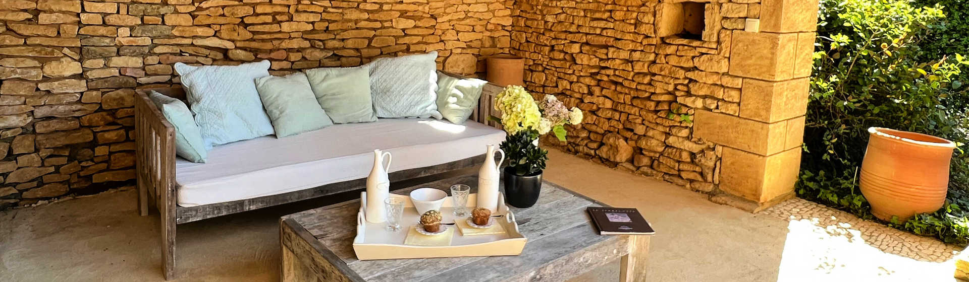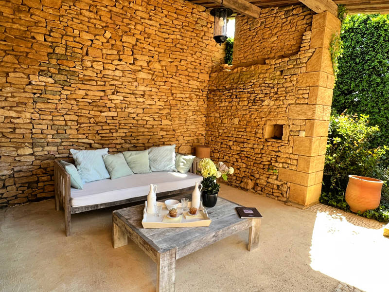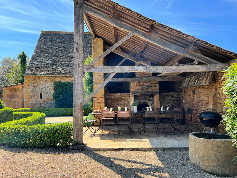 Vous serez certainement impressionné par le jardin paysager. Le jardin a été conçu par l'architecte paysagiste des jardins de Marqueyssac, où les buis centenaires et la glycine luxuriante vous invitent à la rêverie. La piscine, de 11 mètres sur 4, est entièrement clôturée et équipée de transats. Elle dispose également d'un volet roulant électrique, qui offre une sécurité optimale aux jeunes vacanciers. Pour le confort de nos hôtes, la piscine est chauffée de début mai à fin septembre. Attenante, l'ancienne grange a été aménagée en une jolie terrasse couverte, où vous pourrez vous détendre sur le canapé. A proximité du Gîte 1, l'extension de l'ancien four à pain a été aménagée en salle à manger extérieure, avec une très grande table en fer forgé, pouvant accueillir douze convives et un grand barbecue Weber. Vous pourrez manger dehors, à l'abri des chaudes journées d'été ou du vent lors des soirées plus fraîches de mi-saison.