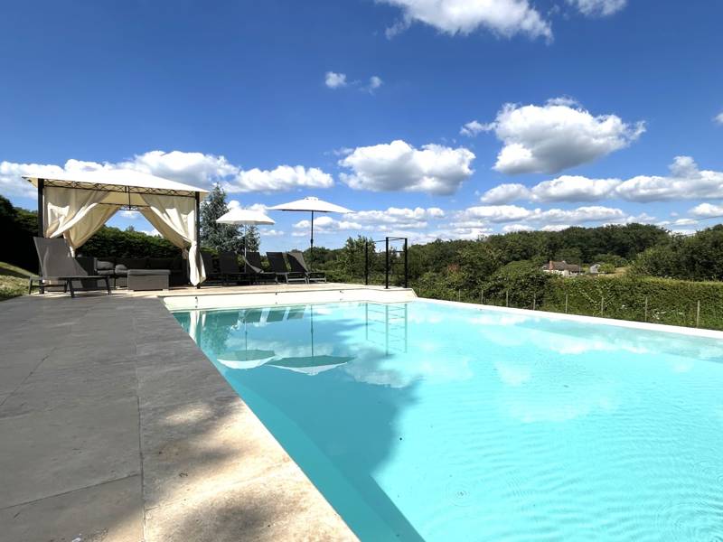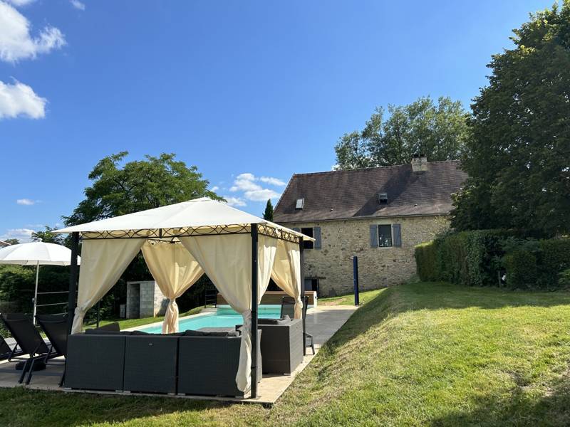 Dans le beau jardin clos vous disposez d'une belle piscine privée chauffée et sécurisée, avec salon de jardin (table et chaises sous le tilleul, parasol, fauteuils et transats au bord de la piscine). Bel Gazebo pour se détendre sous.