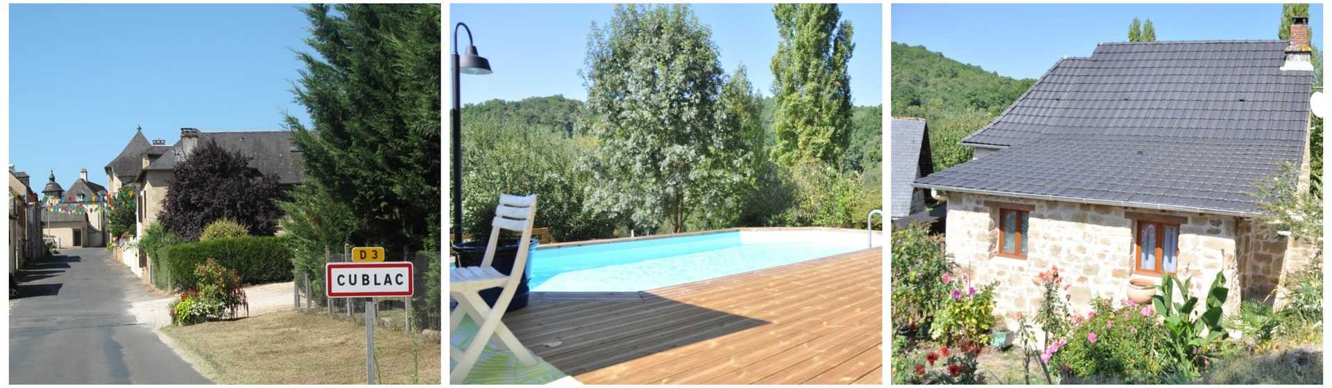 Le gîte Les Peupliers de Cublac est situé dans un endroit magnifique à la frontière entre la Corrèze et la Dordogne. Le gîte est situé à proximité des principaux sites touristiques de la Corrèze et de la Dordogne. Le gîte est situé dans une zone rurale et est entouré d'arbres et de forêts où la paix et la vie privée sont garanties. De la maison, vous avez une vue sur les jardins et la piscine extérieure (7,20 x 4 m, profondeur 1,50 m) avec une grande terrasse privée de 9 x 5 m. Le gîte est situé à 6 km de Terrasson et à 200 mètres d'un centre équestre.