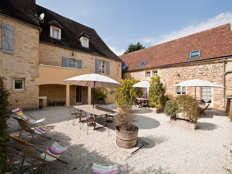 Gite Montfort est une maison mitoyenne en pierre de Dordogne pour 8 à 9 personnes, entièrement restaurée. La maison est située sur un petit domaine avec 6 gites, piscine chauffée et partagée, sur un propriété de 10.000m2 au milieu du Périgord Noir, à 1 km de la rivière Dordogne et à 15 minutes de Sarlat.