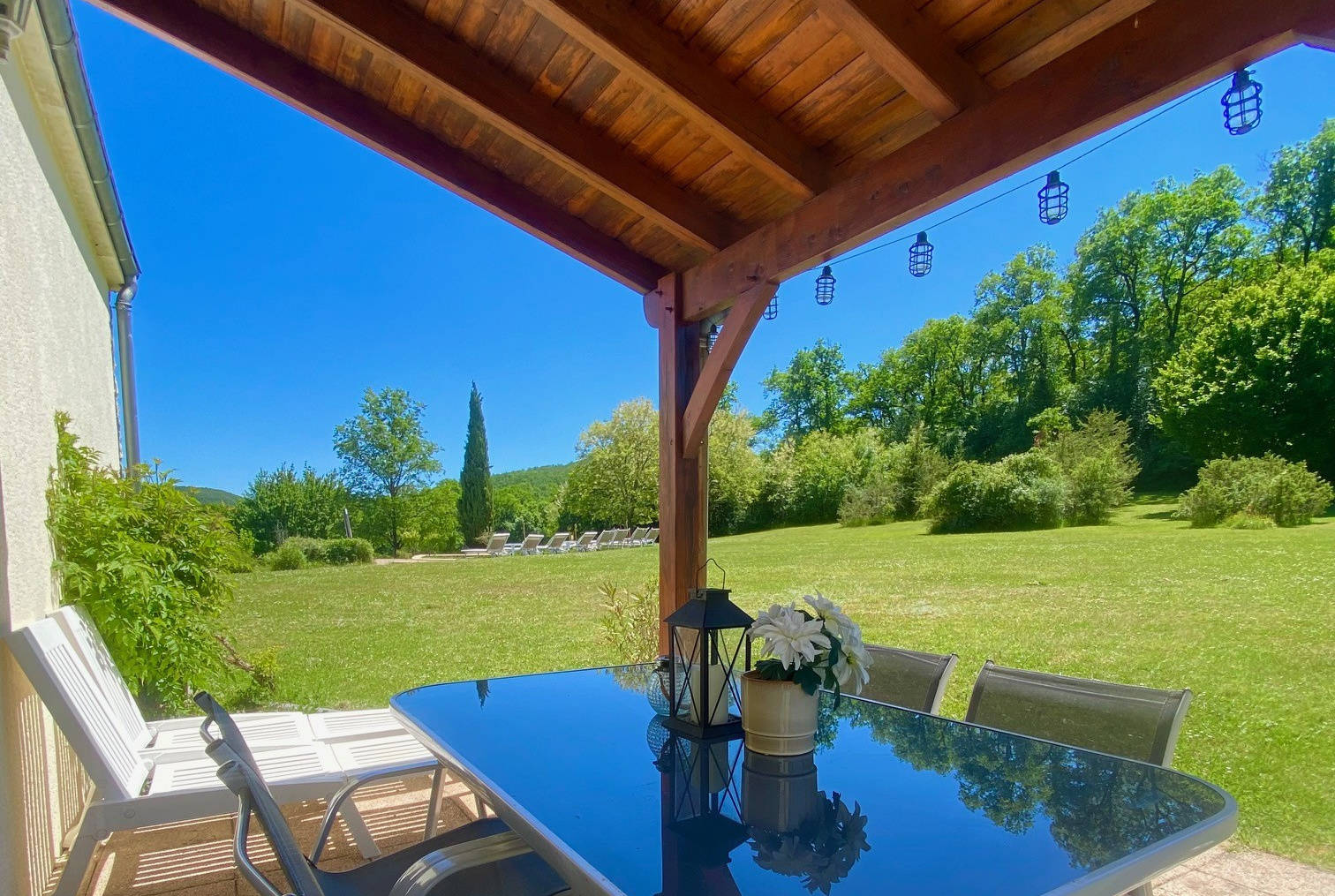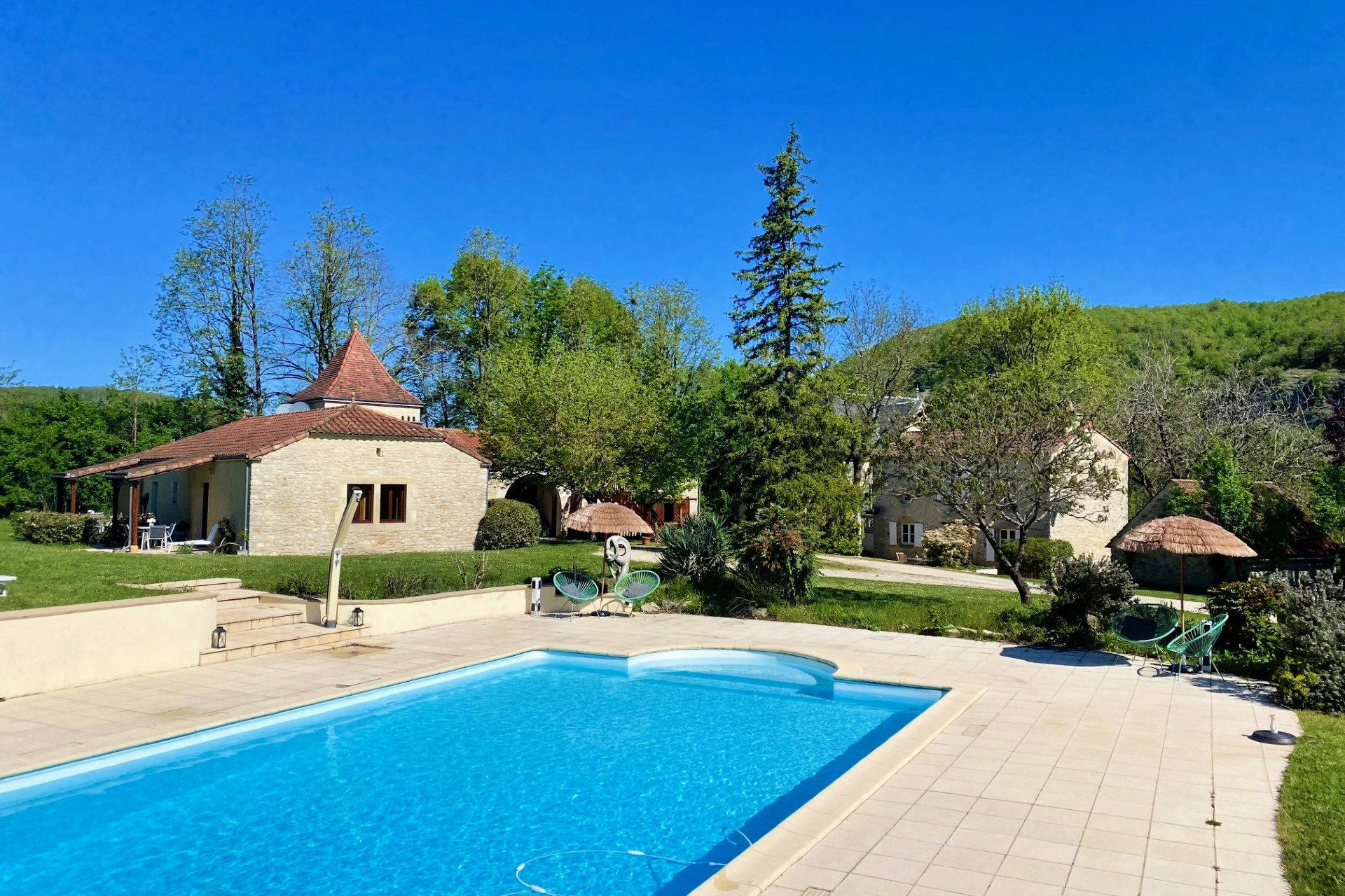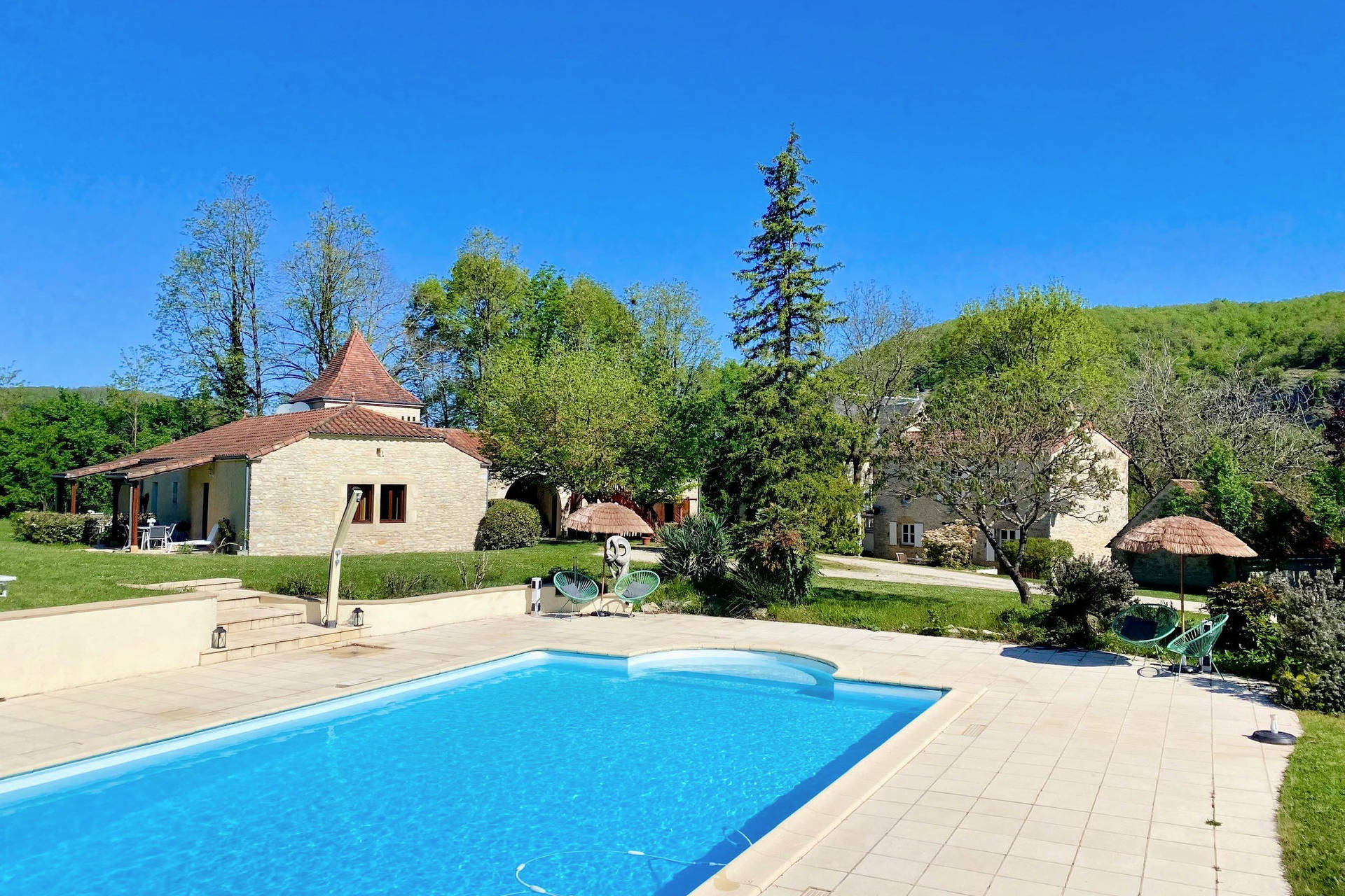 Près de la frontière des départements Dordogne et Lot, vous trouverez le domaine La Cabane. Le domaine est situé dans la vallée du Céou à raison de 2,5 ha. Vous pouvez louer 3 maisons de luxe avec tout le confort et une belle piscine (12 x 6 mètres) avec chaises longues. La tranquillité des campagnes, ne faisant absolument rien à la frontière de la piscine ou des vacances, vous avez visité tous les sites touristiques célèbres à proximité.
