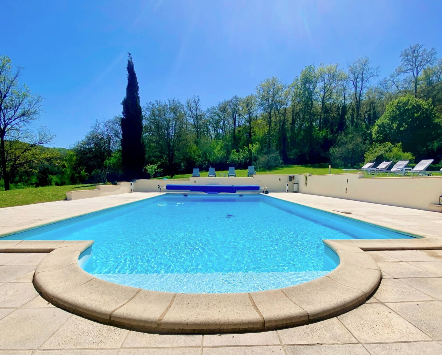 Il ya une belle piscine (12 x 6 m ) avec chaises longues.
