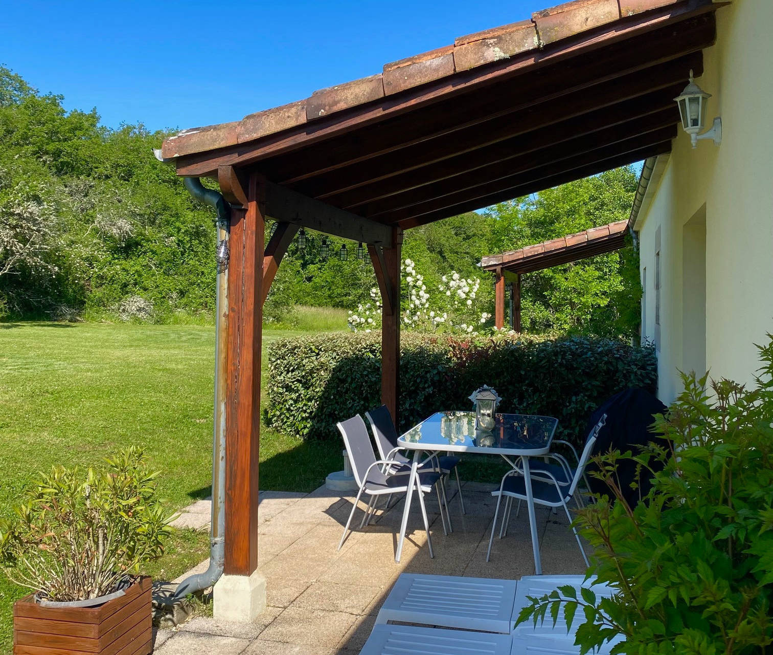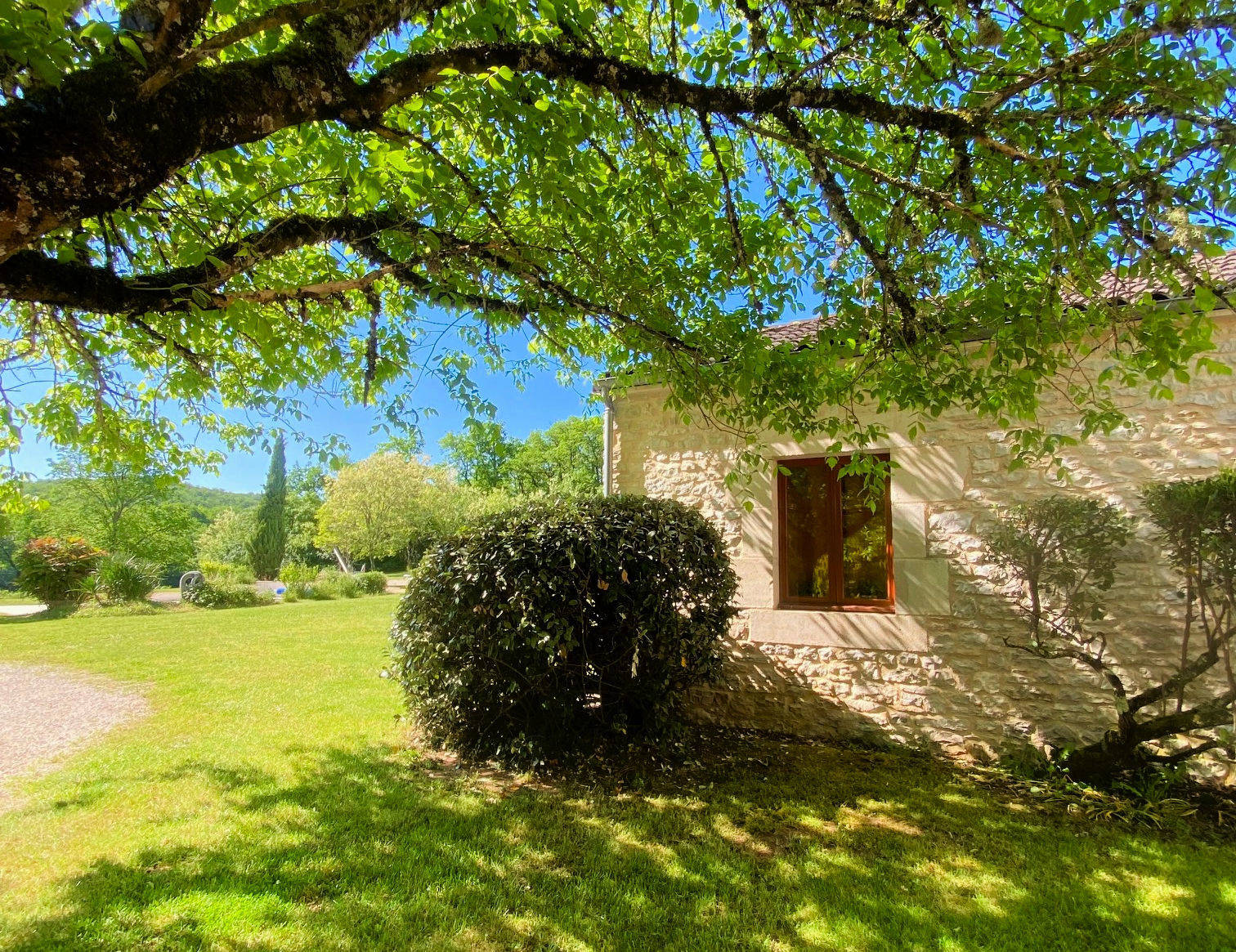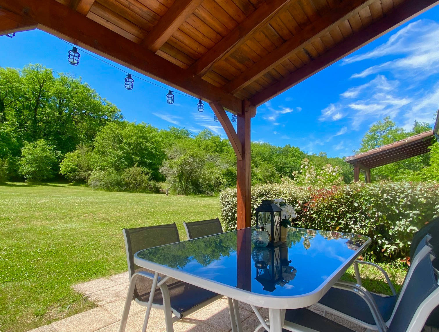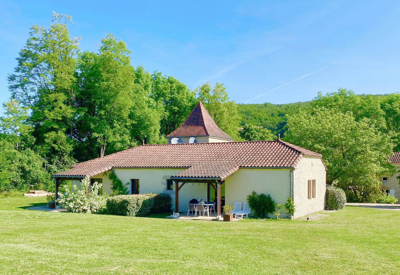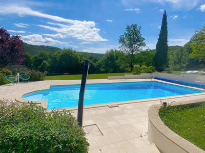 Maison de style Quercynois traditionnel, bâtie en 2001, d'une surface de 75m², très spacieuse et meublé avec goût. Belle terrasse avec vue sur forêt et piscine.