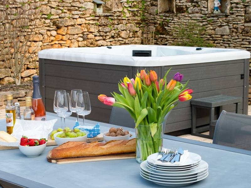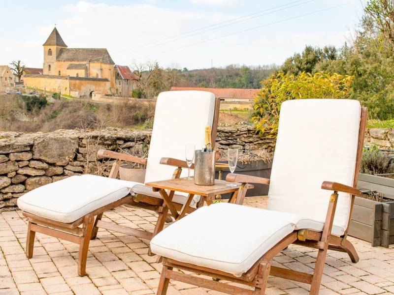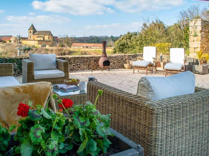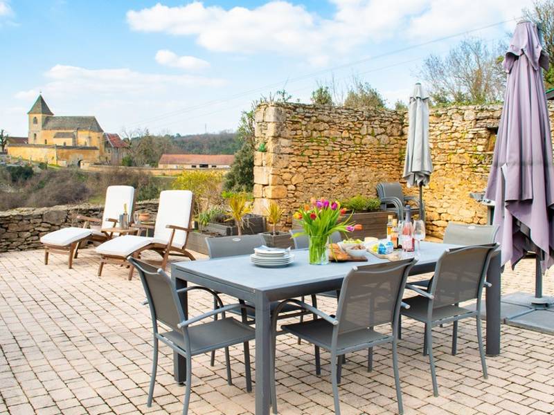 La cuisine et la salle à manger s'ouvrent directement sur une grande terrasse privée orientée sud-ouest (100 m2) avec barbecue à gaz, sièges extérieurs confortables, table et chaises. La terrasse est entièrement privative et offre une vue sur l'ancienne église et le hameau de Carlucet. Les vues sont à couper le souffle avec les couchers de soleil les plus incroyables sur la vallée. Il y a un parking privé pouvant accueillir jusqu'à 2 voitures.